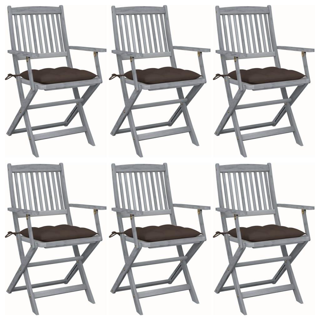 Queste sedie da pranzo sono realizzate in legno massello di acacia, un legno tropicale, che le rende resistenti agli agenti atmosferici e durevoli per anni di utilizzo. Il legno massello di acacia ha la forza di sopportare il peso e di resistere all'usura del tempo. La superficie grigio slavato è facile da pulire con un panno umido. Le sedie possono essere piegate per risparmiare spazio quando non vengono utilizzate. Inoltre, i cuscini inclusi offrono un comfort extra mentre ci si rilassa o si pranza. Ogni cuscino è dotato di due set di corde per poter essere fissato saldamente alla sedia.