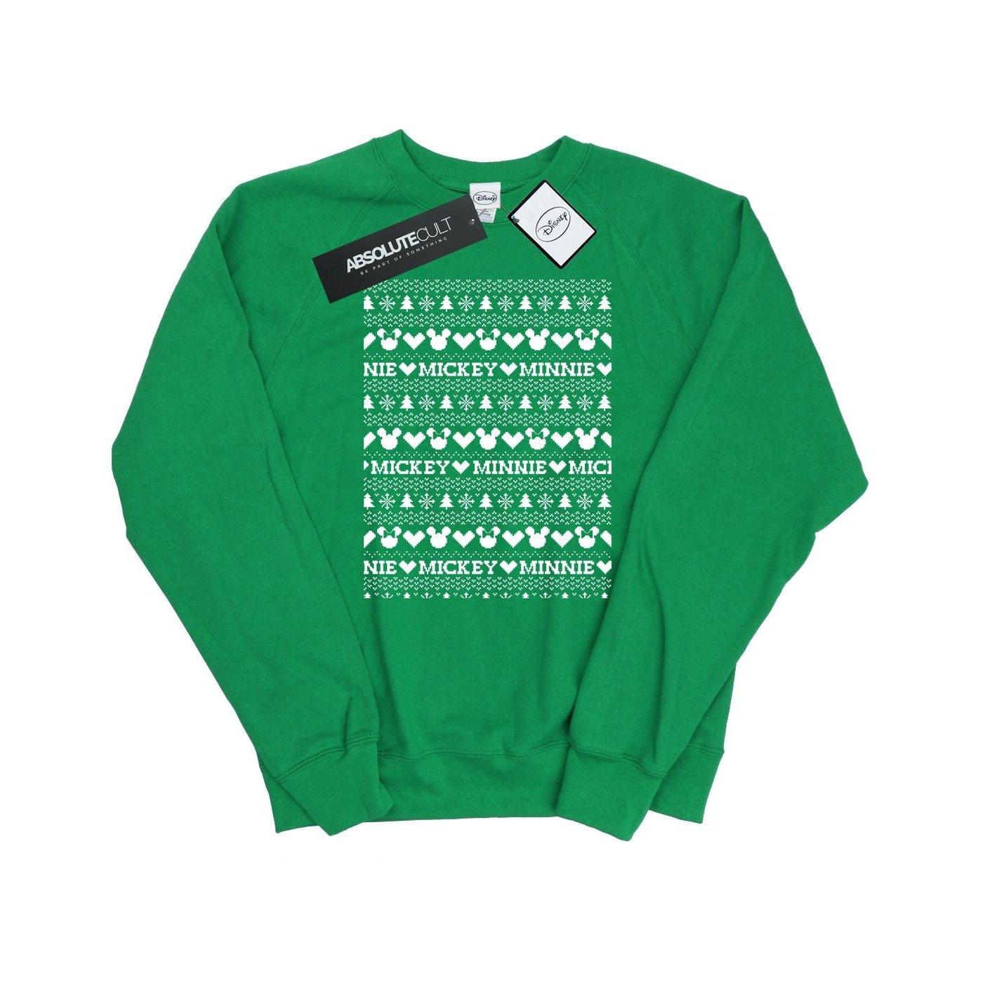 Questa felpa festiva presenta un giocoso design a maglione natalizio con gli iconici motivi di Topolino e Minnie. È una scelta comoda ed elegante per le festività natalizie.
