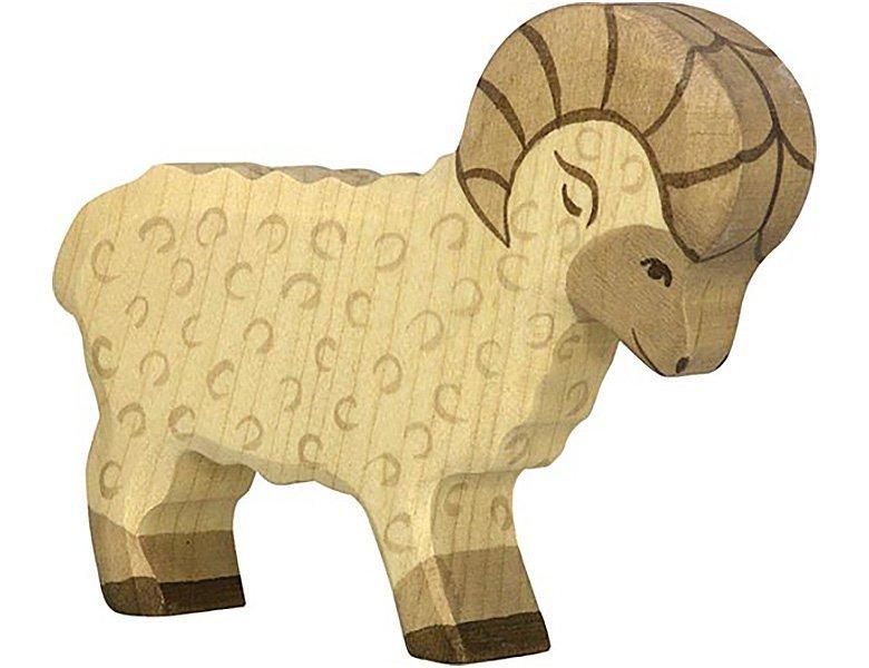 Diese handgefertigte Holzfigur eines Widders überzeugt durch hochwertige Verarbeitung aus massivem Ahorn- und Buchenholz. Sie ist sanft abgerundet und mit umweltfreundlichen Farben auf Wasserbasis bemalt. Mit den Abmessungen 11,4 x 2,3 x 9 cm passt sie perfekt in jede Spielumgebung.
