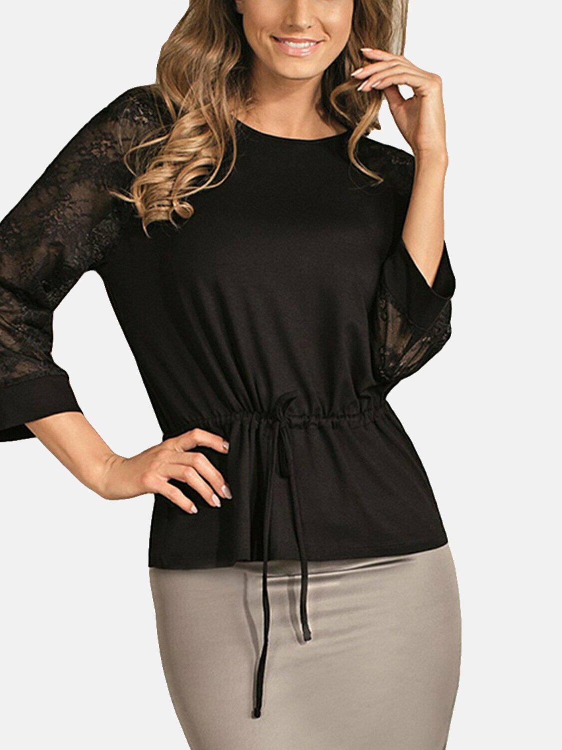 Questo top a maniche a tre quarti della collezione Veronica presenta un inserto elastico in vita, regolabile con laccetti, per valorizzare la silhouette. Le maniche sono realizzate in pizzo ricamato, conferendo un aspetto femminile e romantico. Questo top è ideale da abbinare a qualsiasi gonna o pantalone per un look elegante. È realizzato in un tessuto confortevole e fluido.