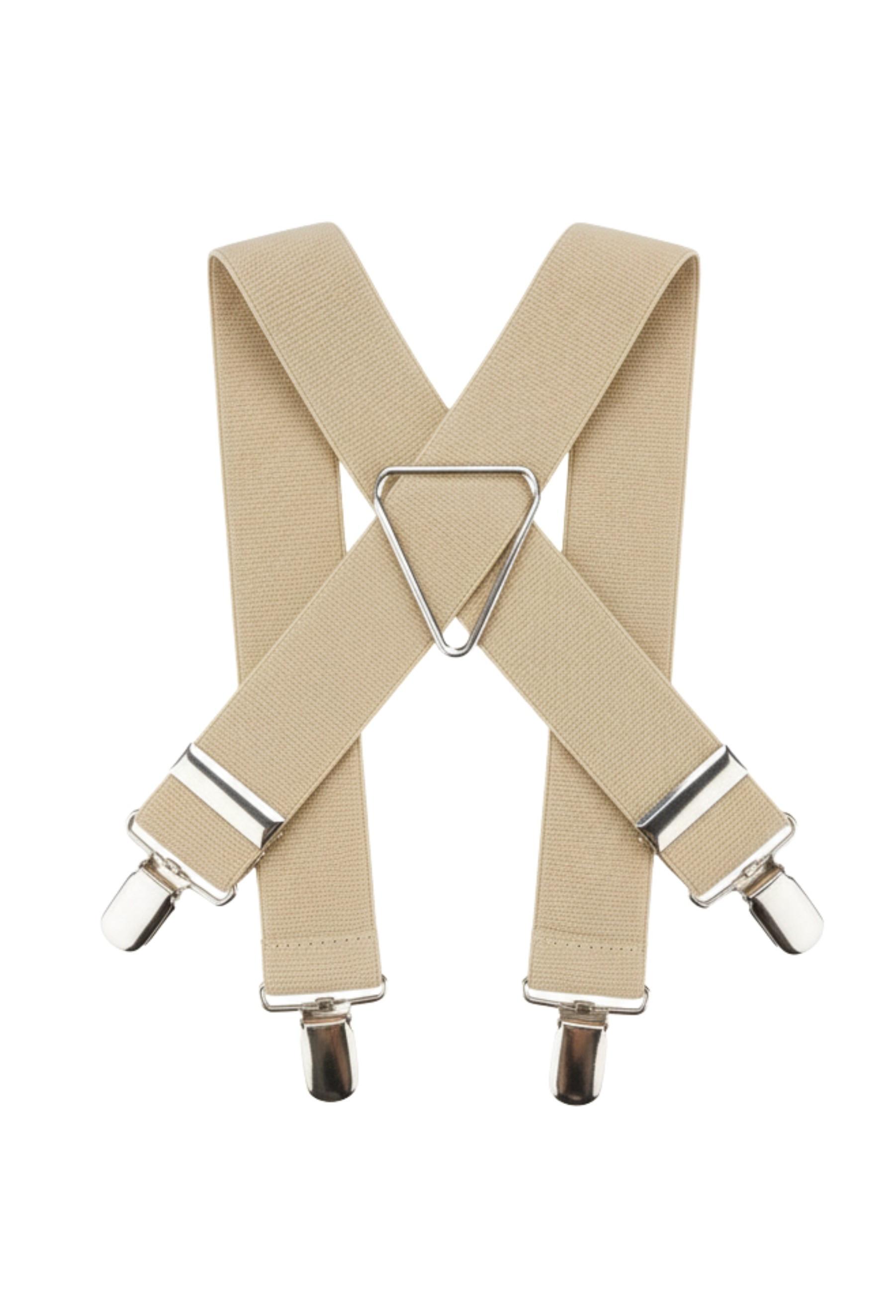 Queste bretelle a X offrono un modo classico e funzionale per mantenere i pantaloni saldamente in posizione. Il design presenta una larghezza di 3,5 cm e una lunghezza di 125 cm, fornendo una vestibilità comoda e regolabile per vari tipi di corporatura. Le clip metalliche assicurano un fissaggio saldo ai vestiti. L'incrocio posteriore è interamente in metallo.