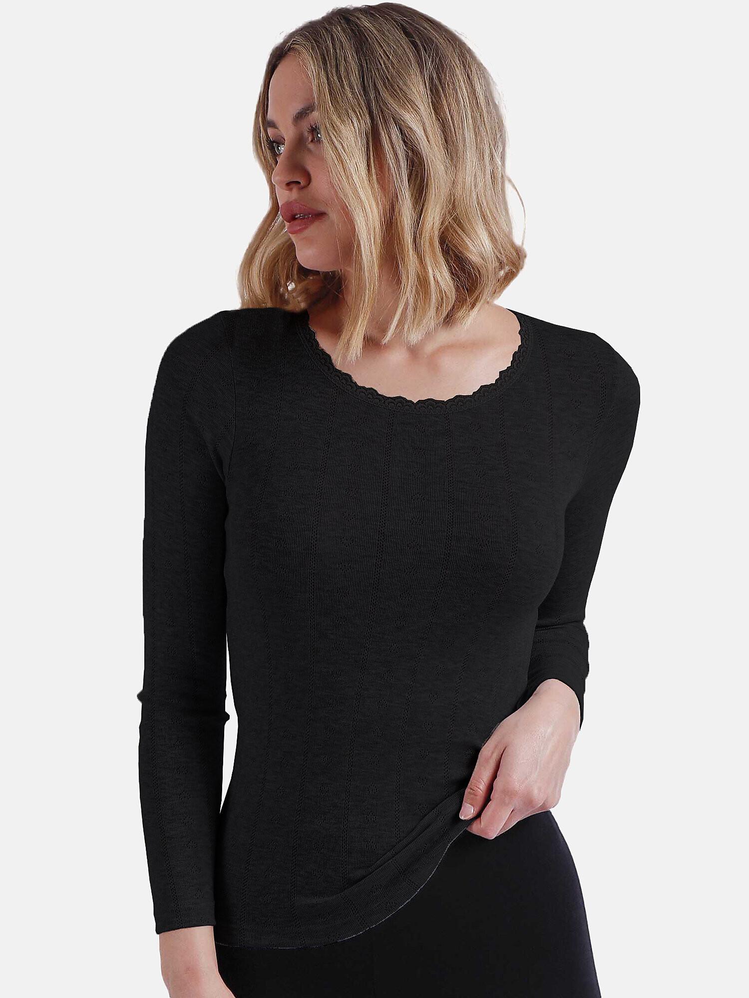 Questo top a maniche lunghe presenta uno stile classico e chic con dettagli in maglia a coste e pizzo sulla scollatura. Facilissimo da indossare, può essere portato da solo in combinazione con qualsiasi capo inferiore del guardaroba o come sottogiacca un po' più caldo per l'inverno. Grazie al suo colore e allo stile senza tempo, può essere indossato in qualsiasi occasione e si abbina perfettamente a vari outfit. Il top ha uno scollo rotondo, maniche lunghe, una vestibilità comoda e un tessuto morbido che si adatta piacevolmente alla pelle.