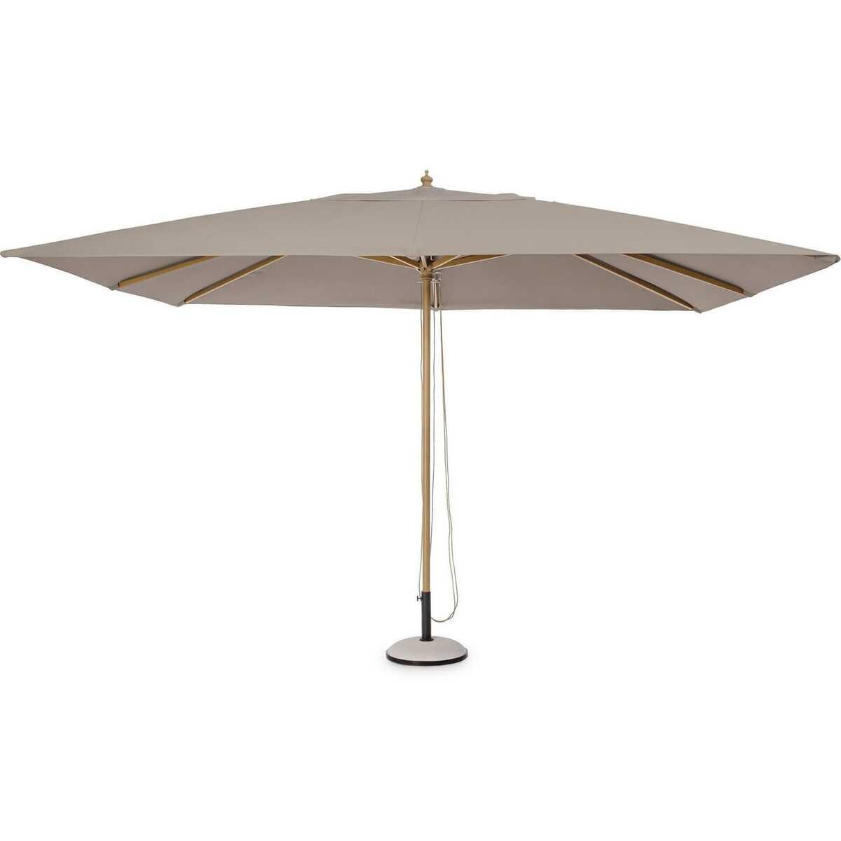 Struttura in alluminio verniciato a polvere. Finitura effetto legno. Corona in plastica. Palo ø48x1,8mm. 8 montanti 20x30 mm. Telone in poliestere 235g/m2. Supporto non incluso.