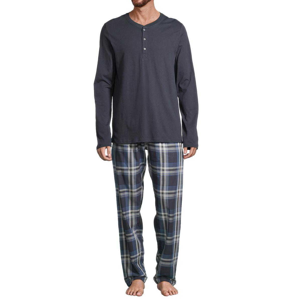 Schiesser Night & Home Pigiama Henley Maniche Lunghe