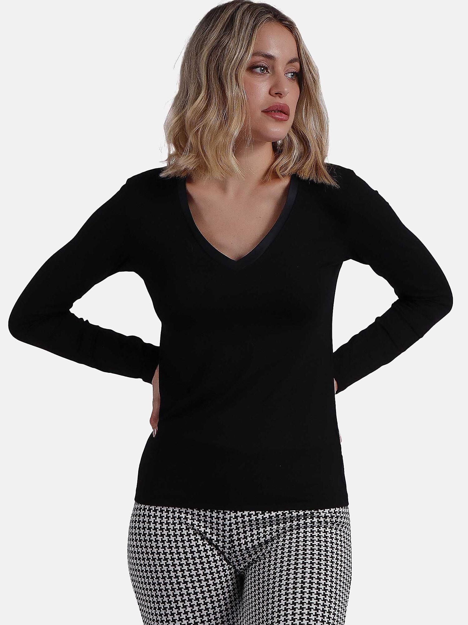 Il top a maniche lunghe Pico Raso offre uno stile classico con un tocco di romanticismo, grazie allo scollo a V delicatamente bordato da strisce di raso. Facilissimo da indossare, si abbina a qualsiasi capo del vostro guardaroba, sia esso un pantalone classico, un jeans o una gonna. Il suo colore e il suo stile senza tempo vi permetteranno di indossarlo in qualsiasi occasione e di abbinarlo perfettamente ai vostri outfit. È realizzato in tessuto di viscosa molto morbido e piacevole sulla pelle.
