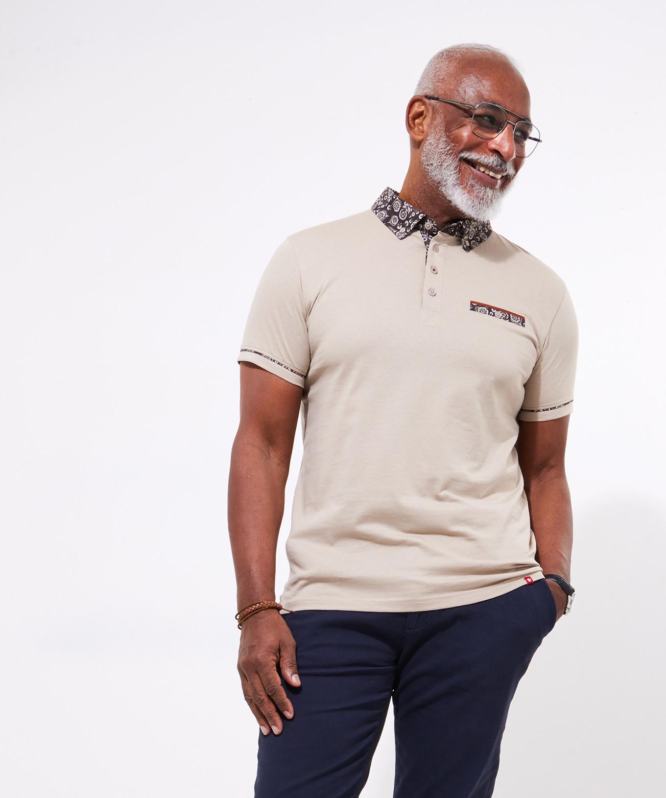 Una polo di alta qualità è imbattibile, e questa polo in jersey è così raffinata che diventerà sicuramente un nuovo capo preferito. Presenta un design classico con un tocco moderno, mostrando un motivo floreale sul colletto e sul bordo della tasca. La maglietta è progettata per il comfort e lo stile, rendendola un'aggiunta versatile a qualsiasi guardaroba.