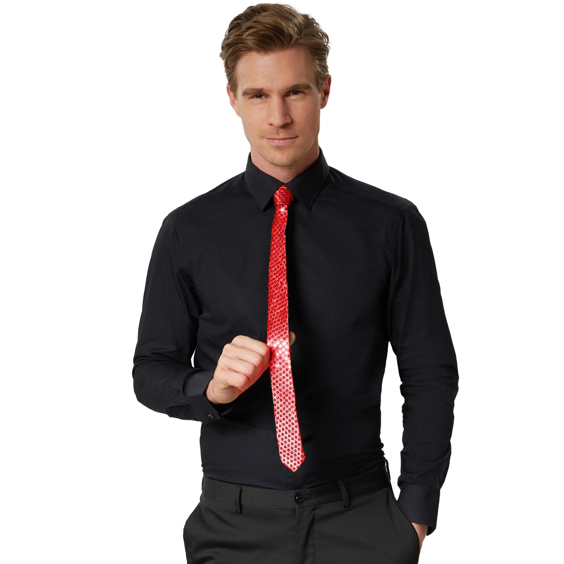 Elevante e stravagante al tempo stesso è il tratto caratteristico della cravatta con paillettes. Con il movimento o per effetto della luce, gli innumerevoli finissimi lustrini sono in grado di creare un affascinante e variegato luccichio e sfavillio di riflessi e colori. La cravatta dal taglio slim è molto gradevole da indossare e può essere annodata alla lunghezza desiderata. Materiale: 100% poliestere.