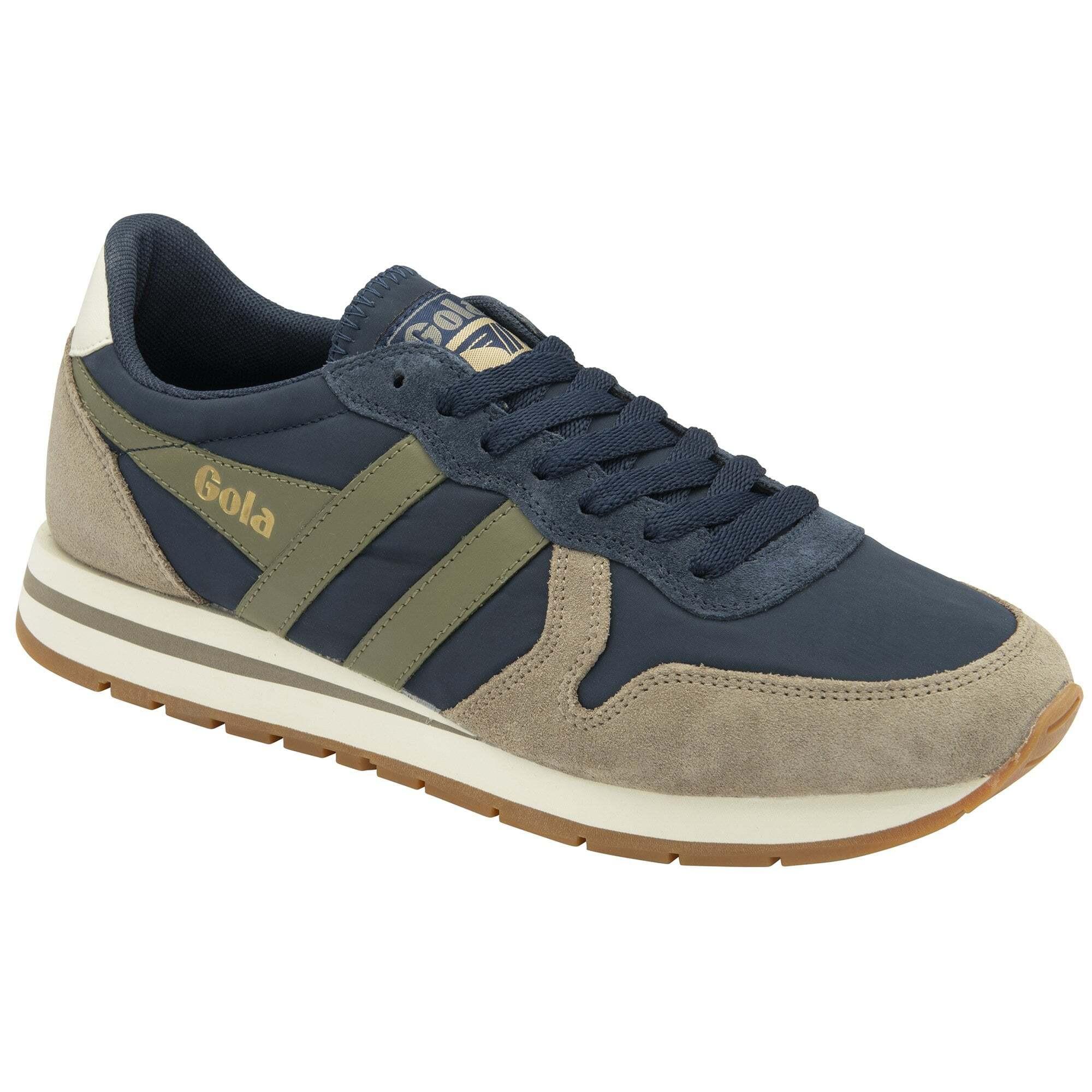 La nuova edizione di Daytona Chute combina la vecchia scuola nylon con una palette di colori urbani. Questa silhouette jogger di tendenza vintage in nylon paracadute è stata reimmaginata dal catalogo Gola. Caratterizzata dall'iconico marchio Gola, da un'intersuola in EVA a strisce e da una suola con zoccoli, questa scarpa sportiva da uomo per tutti i giorni tous nei colori navy, rhino e kaki rimane una scelta facile.