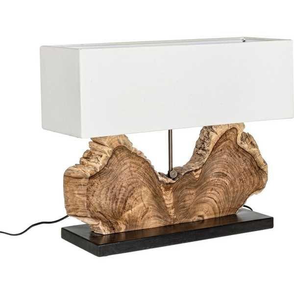 Lampada da tavolo Naga in legno riciclato, cotone e acciaio, colore bianco, 60 x 20 x 55 cm