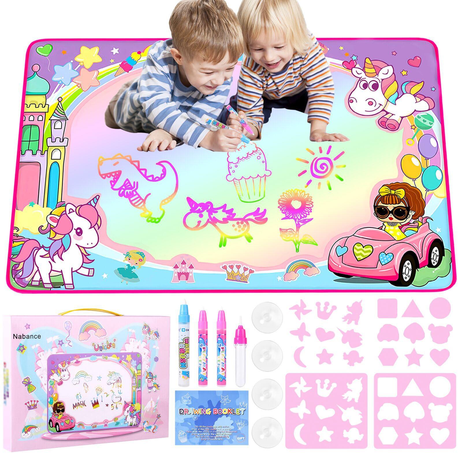 Activity-board Malmatte mit Wasserstift Wassermatte DoodleWater Malmatte Super Drawing Mat mit 3 Wasserstiften 18 Stempelset Aufbewahrung