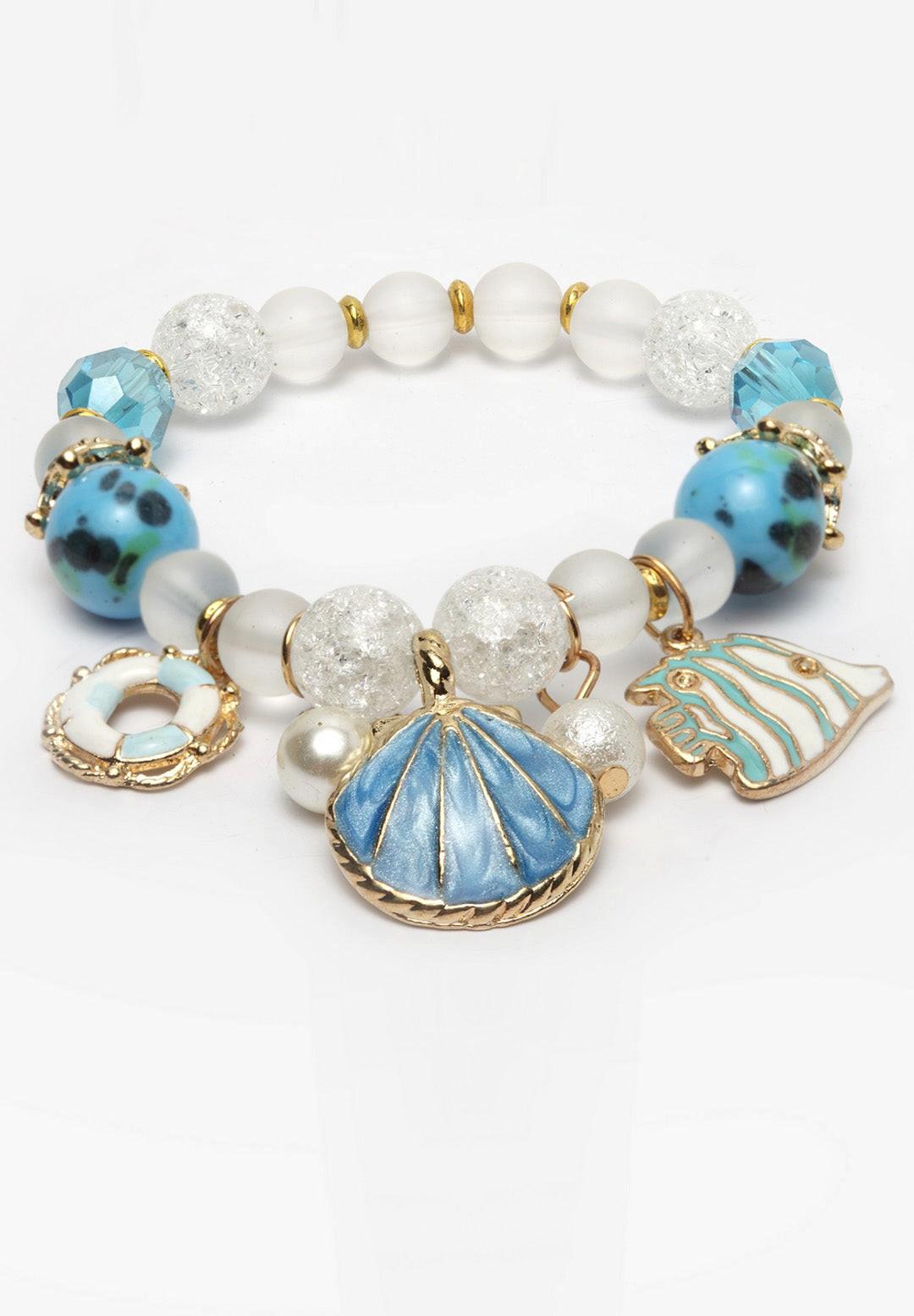 Questo braccialetto è perfetto per aggiungere un tocco di fascino libero al tuo polso. Realizzato con cura e attenzione ai dettagli, questo braccialetto è progettato per adattarsi comodamente a qualsiasi dimensione di polso. L'esclusivo design a schiaffo consente di indossarlo e rimuoverlo facilmente, mentre i materiali utilizzati garantiscono resistenza e lunga durata. Abbraccia la bellezza di questo braccialetto ed esprimi la tua anima bohémien con il nostro braccialetto a schiaffo Boho con perline di conchiglie e cristalli di pietra naturale di colore blu. Dimensioni: 6,5 cm | Placcatura: placcata oro | Chiusura: moschettone