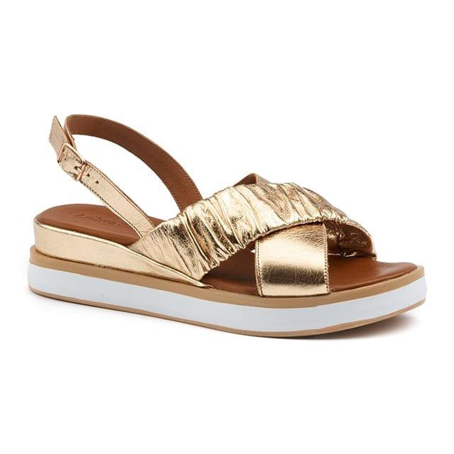 La suola, con la sua struttura a più strati, offre una sensazione di comfort e stile. Il colore oro è una scelta perfetta per l'estate, e l'altezza del tacco di 45 mm aggiunge un tocco di raffinatezza. I dettagli del sandalo in pelle metallizzata e il design incrociato aggiungono un tocco di moda e stile. Questi sandali sono ideali per la spiaggia, le vacanze o l'uso quotidiano.