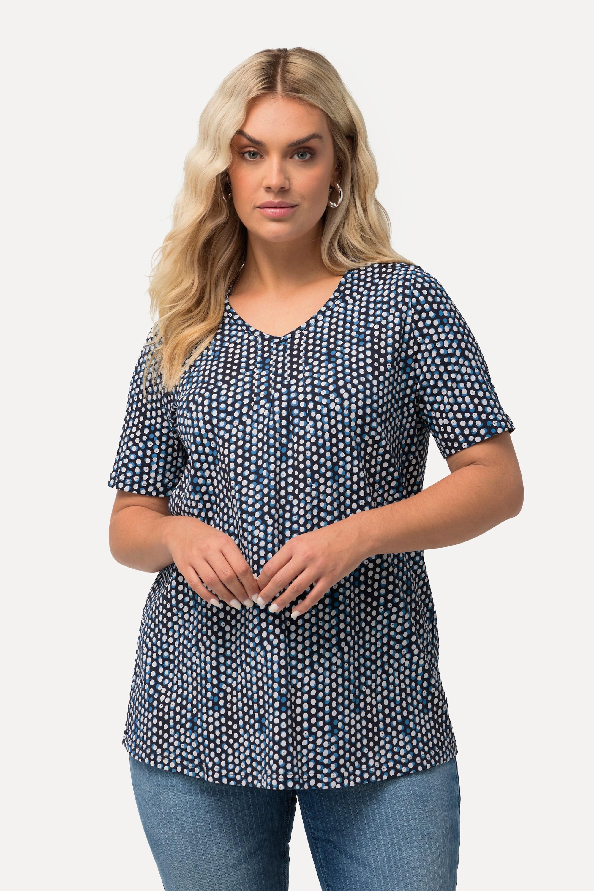 Ulla Popken T-Shirt Linea ad A Scollo a V Mezza Manica con Pieghe Decorative