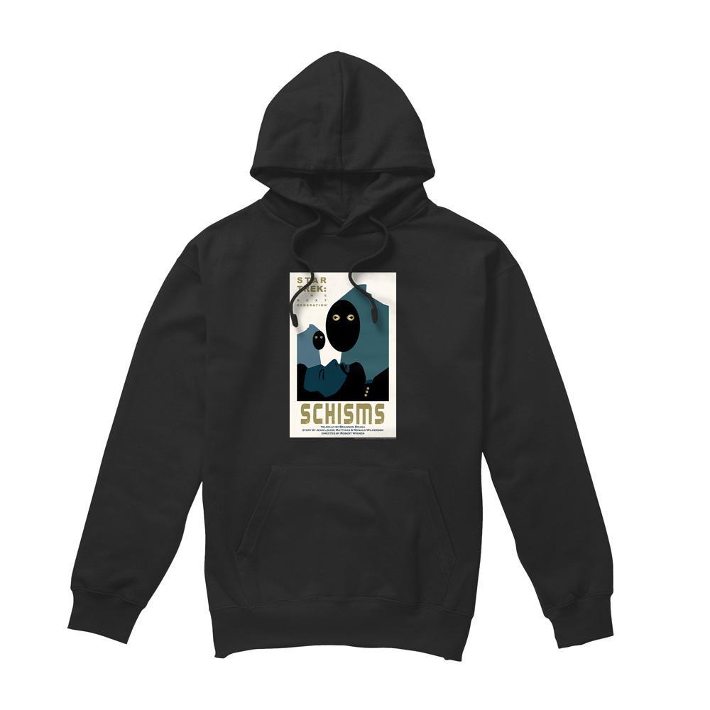 Questa felpa con cappuccio presenta una stampa grafica ispirata a Star Trek: The Next Generation Stagione 6 Episodio 5, intitolato "Schisms". Il design cattura l'essenza dell'episodio, rendendolo un capo distintivo per i fan.