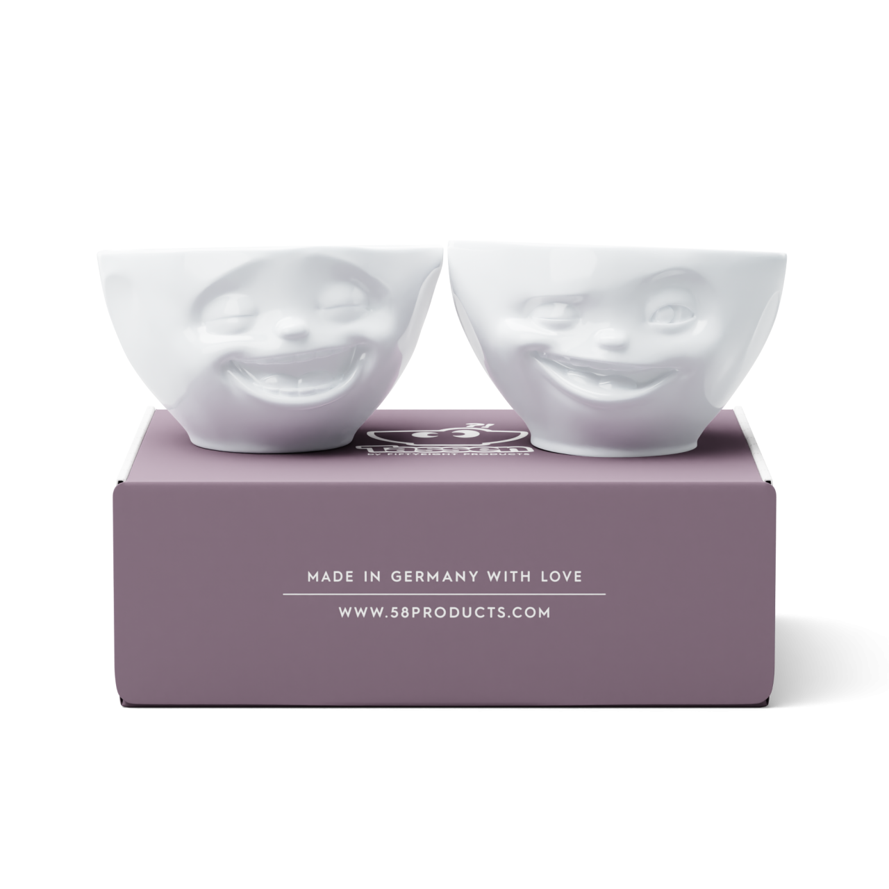 58products Mittleres Schälchen Set Nr. 4 "Lachend & Zwinkernd" in weiß, 200 ml