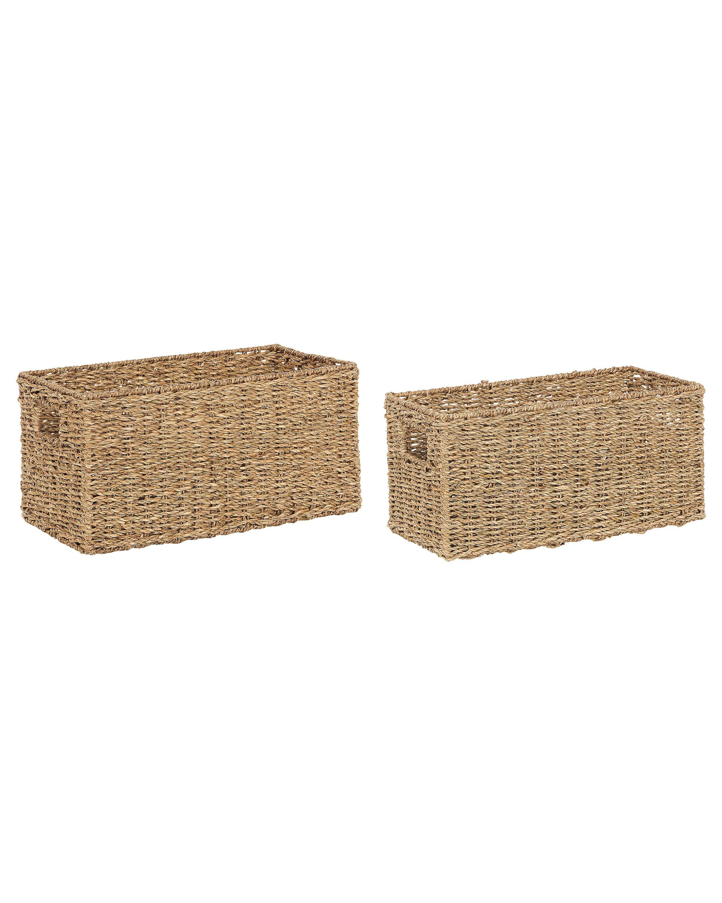 Set di cesti intrecciati a mano. Migliora la tua organizzazione con questo set di due cesti rettangolari meticolosamente realizzati a mano. Intrecciati con l'abbraccio della natura, questi cestini danno un tocco di eleganza rustica al tuo spazio vitale. Grazie al fascino dell'intreccio e alla versatilità del design, questo set è molto più che un contenitore: è un'espressione artigianale di bellezza pratica.