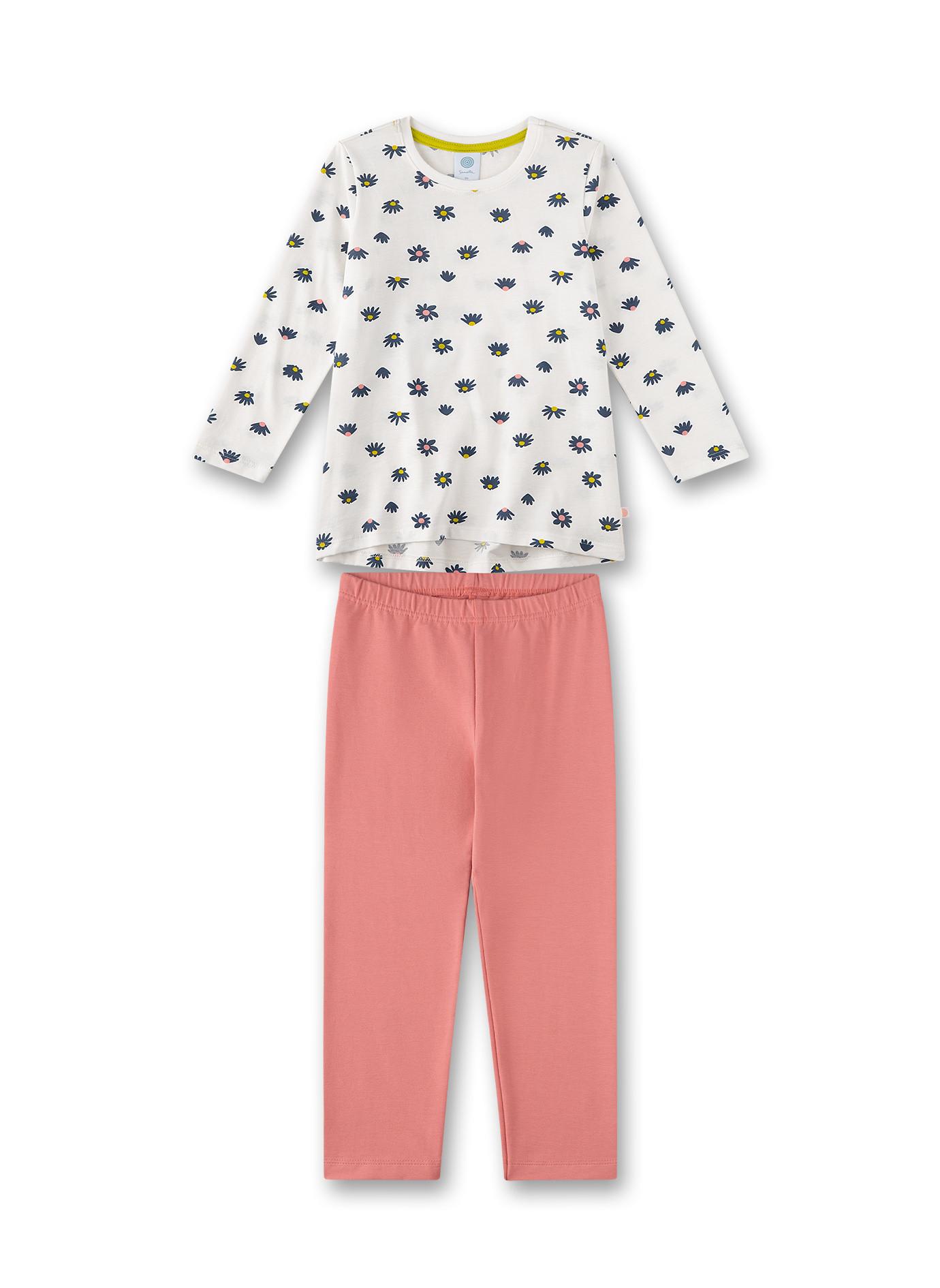 Set di pigiami per bambine del marchio Sanetta. Top a maniche lunghe e pantaloni lunghi, elastico in vita, stampa a motivi, qualità di cotone organico piacevolmente morbido.