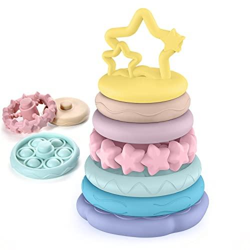 Activity-board 7 Stück Stacking Spielzeug mit Ringen, Stacking Tower Stacking Cup Beißring Baby, sensorische