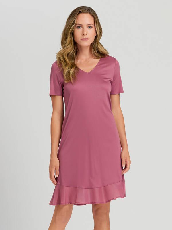 La camicia da notte Faye offre un comfort di prima classe con il suo tessuto morbido come la seta che è leggero sulla pelle. Presenta un inserto trasparente intrecciato sull'orlo, aggiungendo un tocco di eleganza.