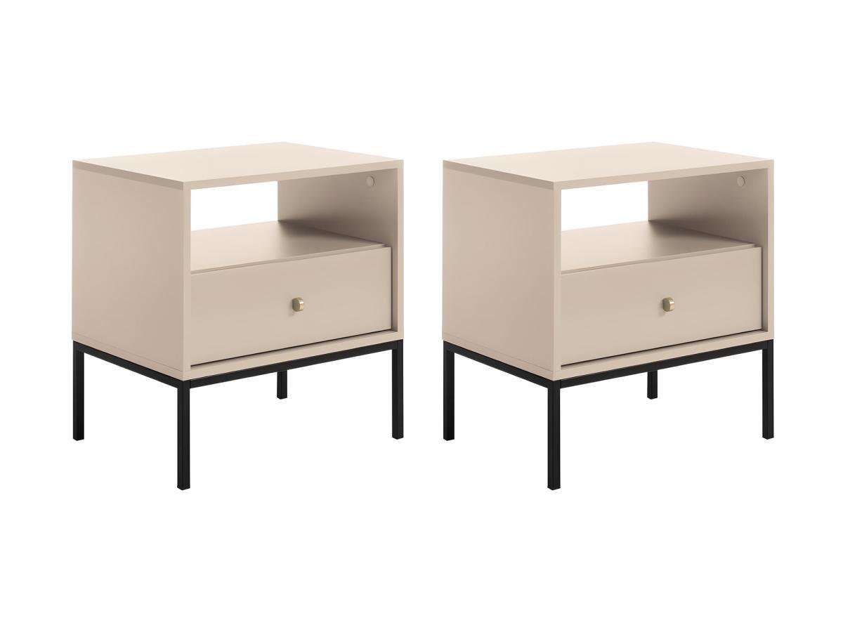 Vente-unique Comodino 1 cassetto e 1 nicchia Beige - Lotto di 2 - BOGDAN