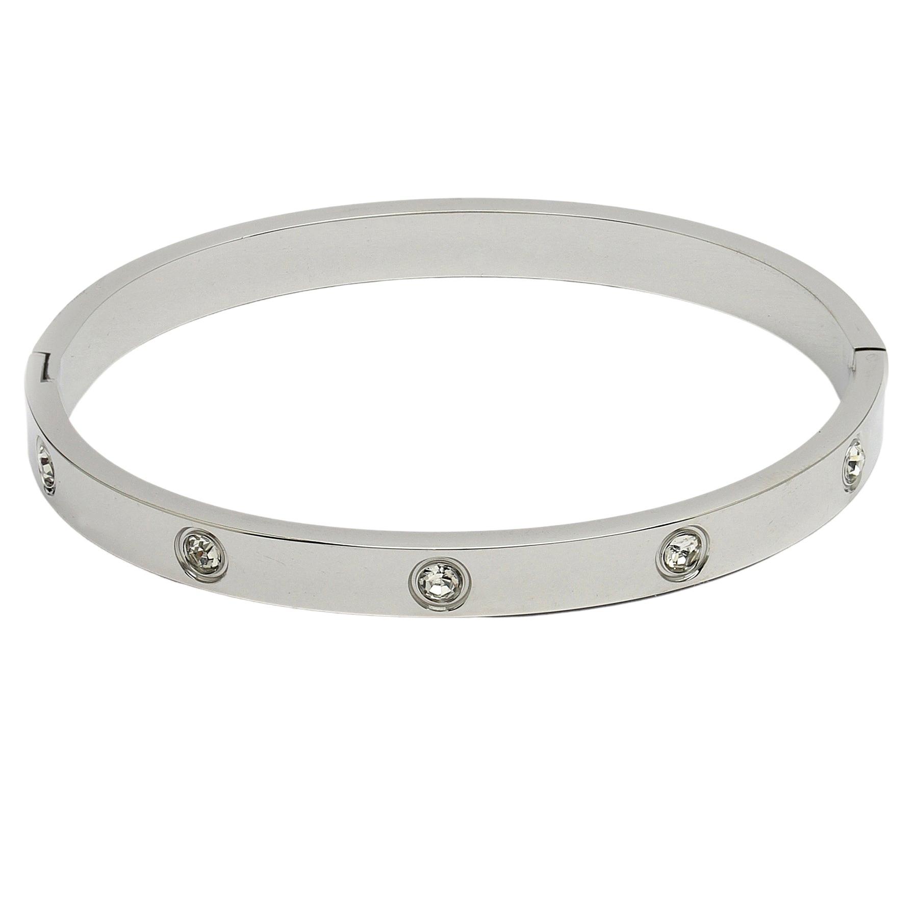 Elegante e senza tempo, il bracciale rigido placcato rodio vanta una finitura argentata radiosa che si adatta facilmente a qualsiasi outfit. Qualunque sia il tuo stile o il tuo umore, questo bracciale offre infinite possibilità per esprimere il tuo senso unico della moda e del tuo stile. Dimensioni: Diametro: 5,8 cm | Placcatura: Placcata rodio | Chiusura: Slip-on