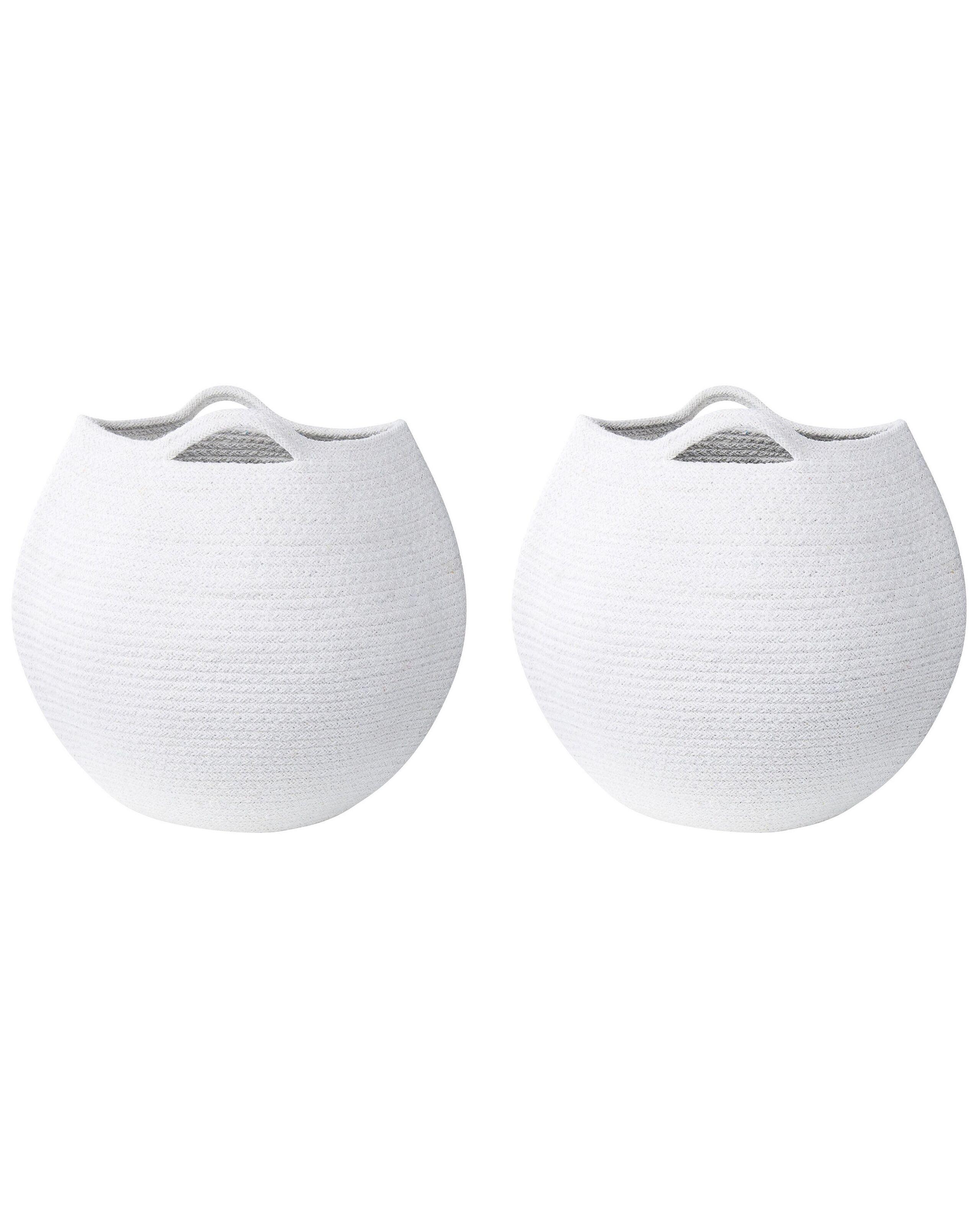 Coppia di cestini portaoggetti in cotone. Fai ordine intorno a te senza sforzo con questo pratico set di 2 cestini. Realizzato a mano in soffice ma durevole cotone di altissima qualità, troverà la sua collocazione ideale in ogni ambiente della casa, indipendentemente dallo stile di decorazione. Ottimo per la cameretta, la zona giorno o la camera da letto, è perfetto anche per il bagno.