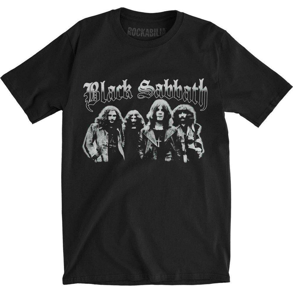 Questa T-shirt Black Sabbath presenta una classica stampa fotografica della band, che cattura il look iconico del leggendario gruppo. Il design include il distintivo logo Black Sabbath sopra i membri della band, rendendola un "must-have" per i fan.