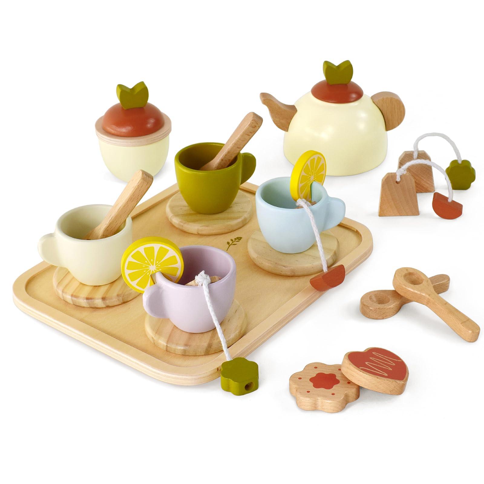 Activity-board, Teeservice Kinderteeservice aus Holz Spielküche Holzspielzeug Teeparty-Set Kinderküchenzubehör Spielessen-Set