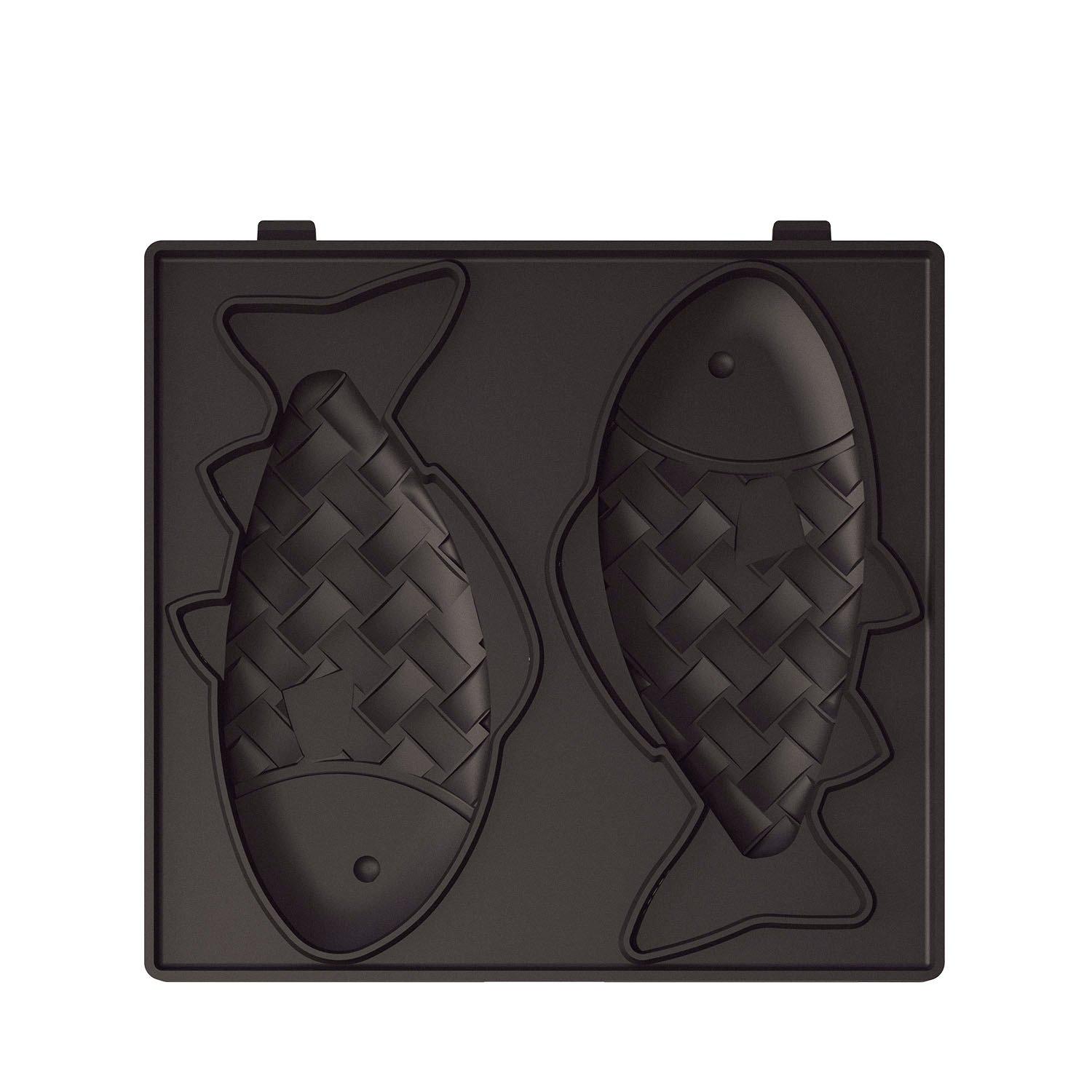 Piatto a forma di pesce Taiyaki. Scegli una ricetta con gli ingredienti che più ti piacciono per preparare l'impasto di questo popolare panino di origine giapponese, versalo sopra lo stampo a forma di pesce e in pochi minuti avrai una colazione o una merenda divertente e originale. Molto facile da cambiare e pulire.