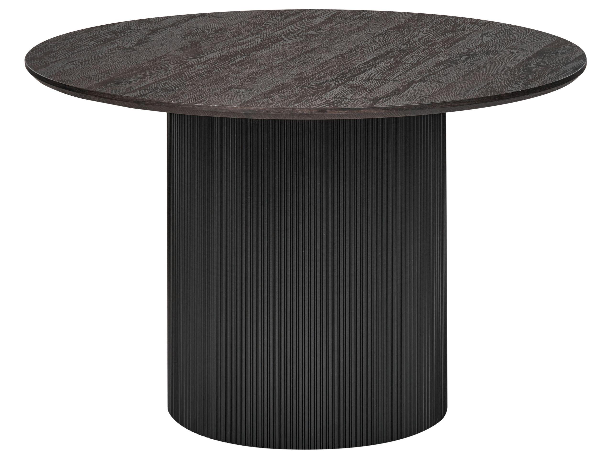 Tavolo minimalista con base a piedistallo. Questo tavolo da pranzo moderno si adatterà perfettamente a qualsiasi area pranzo, grande o piccola. La sua base a colonna elegante con un design scanalato aggiunge un tocco di sofisticatezza. Il piano tondo con una finitura simile al legno crea un'atmosfera calda e accogliente. Perfetto per cene intime o pasti informali.