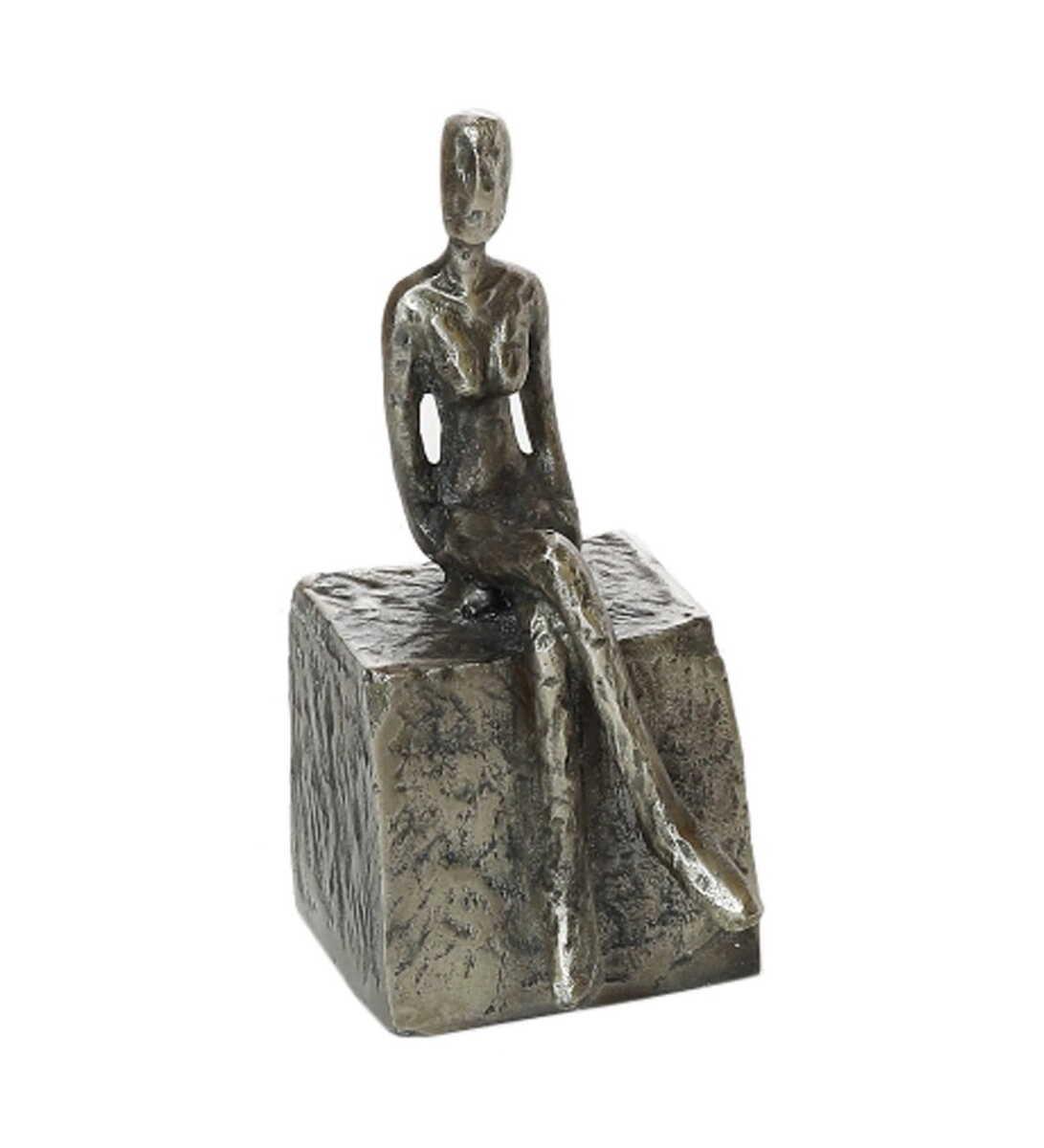 Figura decorativa in alluminio fuso, colore naturale stagnato, 14 x 22 x 10 cm