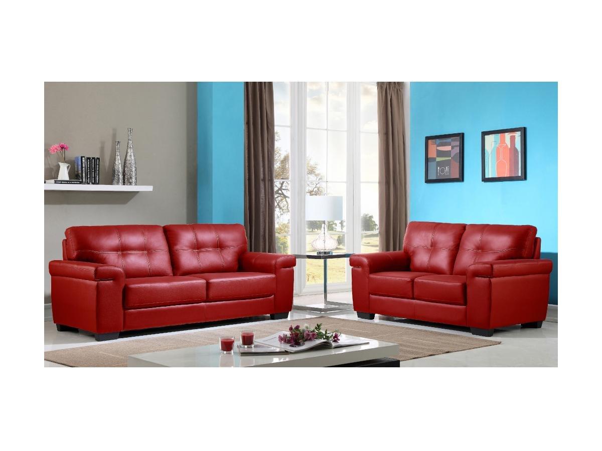 Vente-unique, Divani a 3+2 posti in pelle Rosso HAZEL