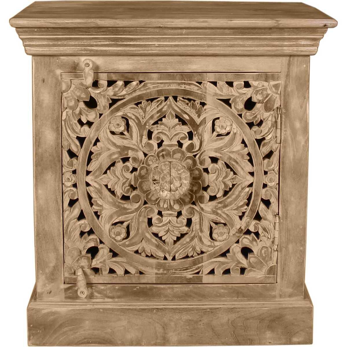 Comodino in legno di mango a 1 anta, naturale, 60x40x65