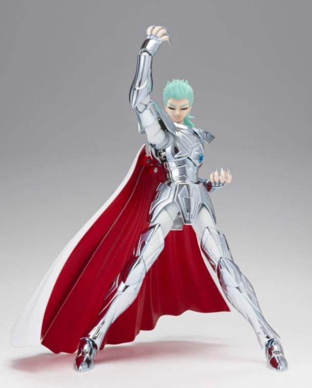 Saint Seiya Myth Cloth EX licensed figurine, with fully articulated plastic body and armour mostly made of metal, adaptable on the armour holder (also called "Object" or "Base"), delivered with the figurine.