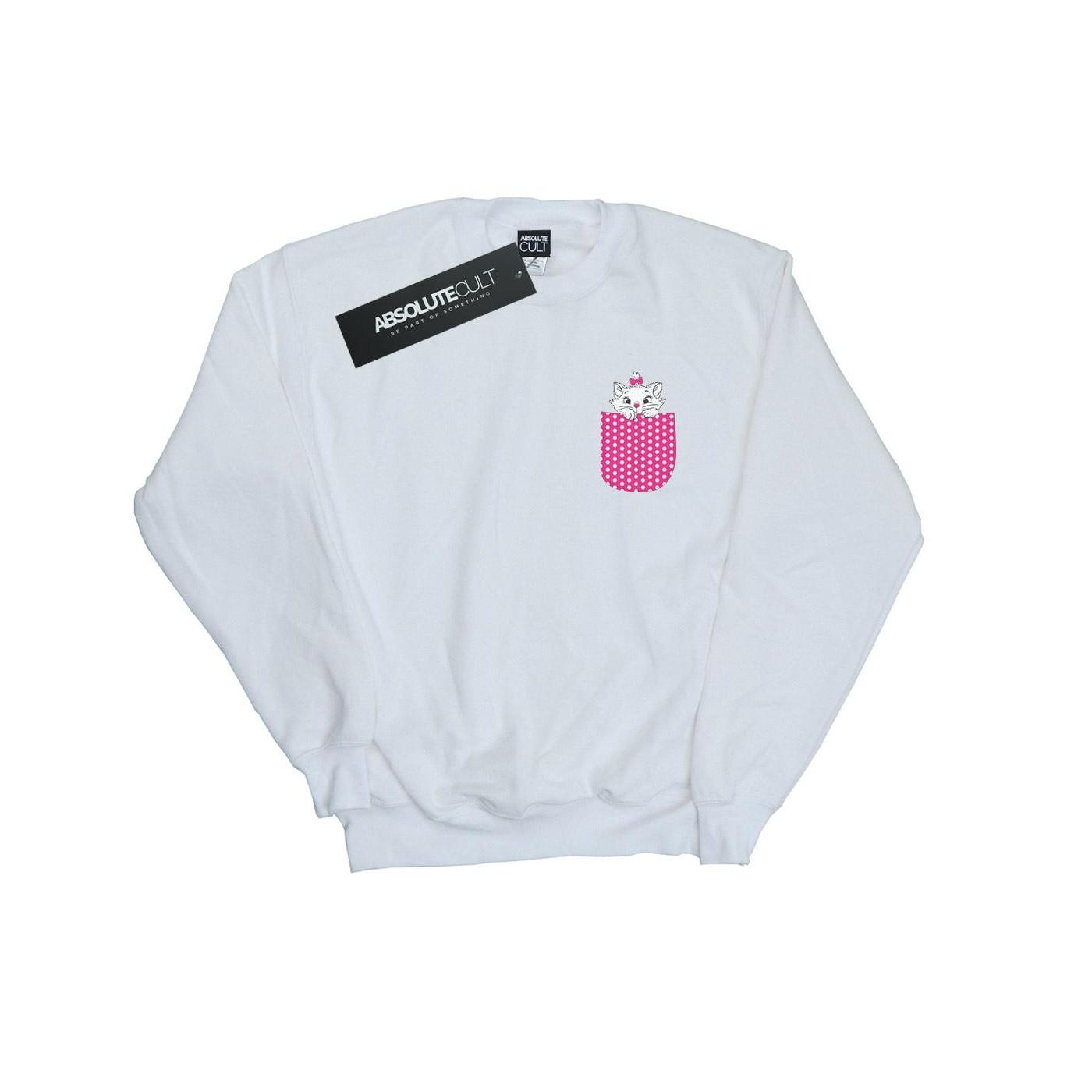 Questa felpa Aristocats presenta un affascinante design di Marie che sbircia da una tasca a pois. Il classico girocollo e le maniche lunghe la rendono una scelta comoda ed elegante per l'uso quotidiano.