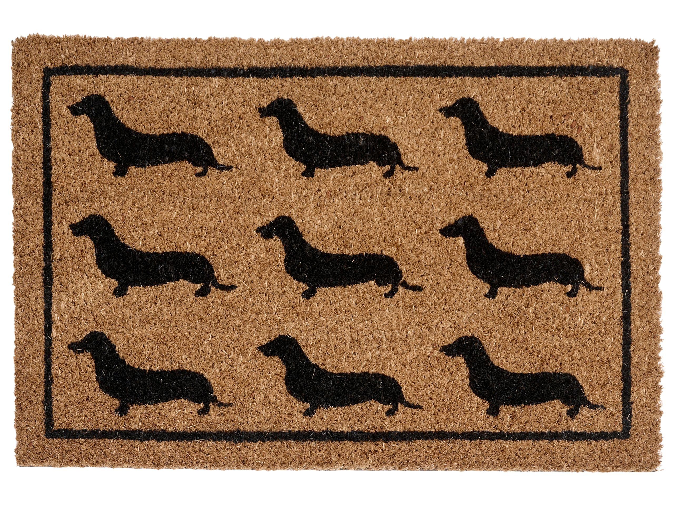 Zerbino per interni con supporto antiscivolo. Migliora la praticità del tuo ingresso di casa con questo zerbino rettangolare, realizzato in fibre naturali di cocco. Caratterizzato da una stampa di cuccioli giocosi, tra cui affascinanti bassotti, questo zerbino dà un tocco delizioso alla tua porta di casa, mentre i materiali ecologici trattengono efficacemente lo sporco e l'umidità. Grazie alla robusta base antisdrucciolo, garantisce sicurezza e durata nel tempo.