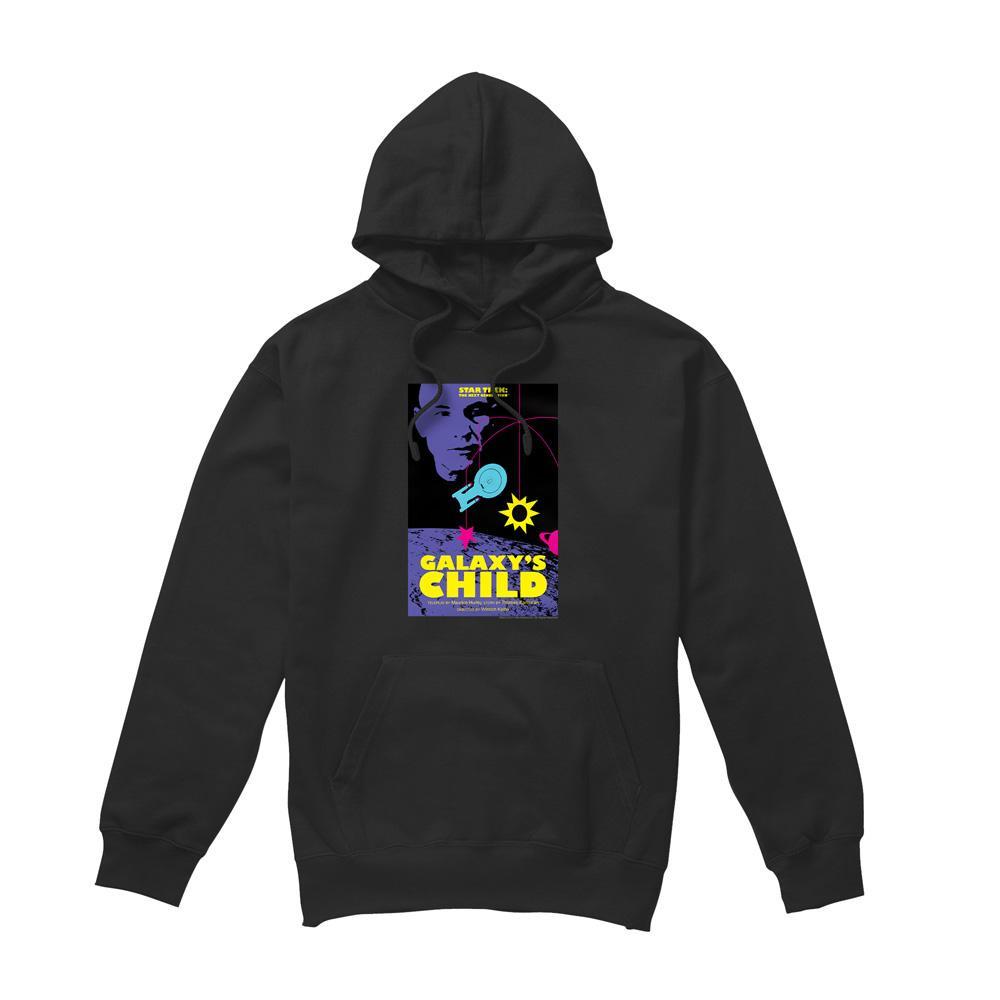 Questa felpa con cappuccio presenta una stampa grafica ispirata a "The Next Generation Stagione 4 Episodio 16: Galaxy's Child". È progettata per il comfort e lo stile, rendendola un'aggiunta versatile a qualsiasi guardaroba casual.
