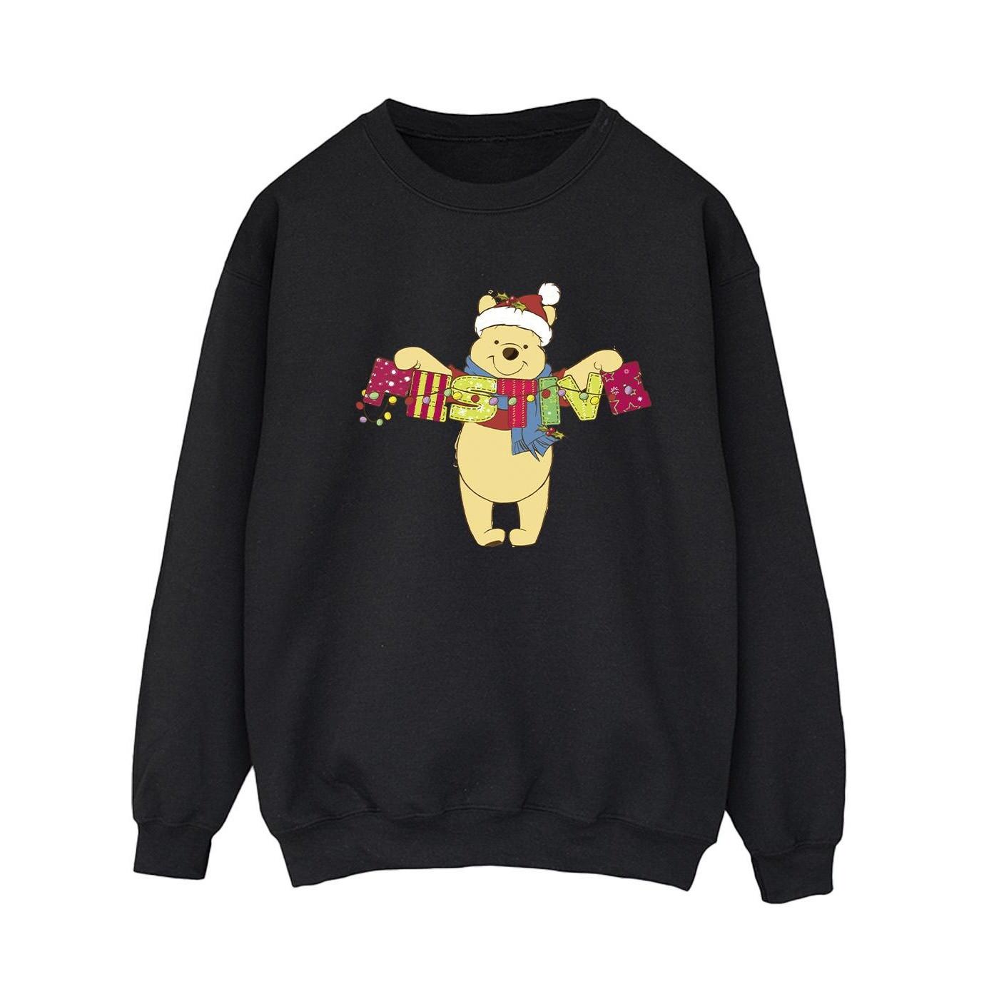 Questa felpa festiva presenta Winnie the Pooh vestito con un cappello e una sciarpa di Babbo Natale, che tiene regali colorati che formano la parola "CHRISTMAS". È un'aggiunta affascinante a qualsiasi guardaroba festivo, perfetta per celebrare la stagione.