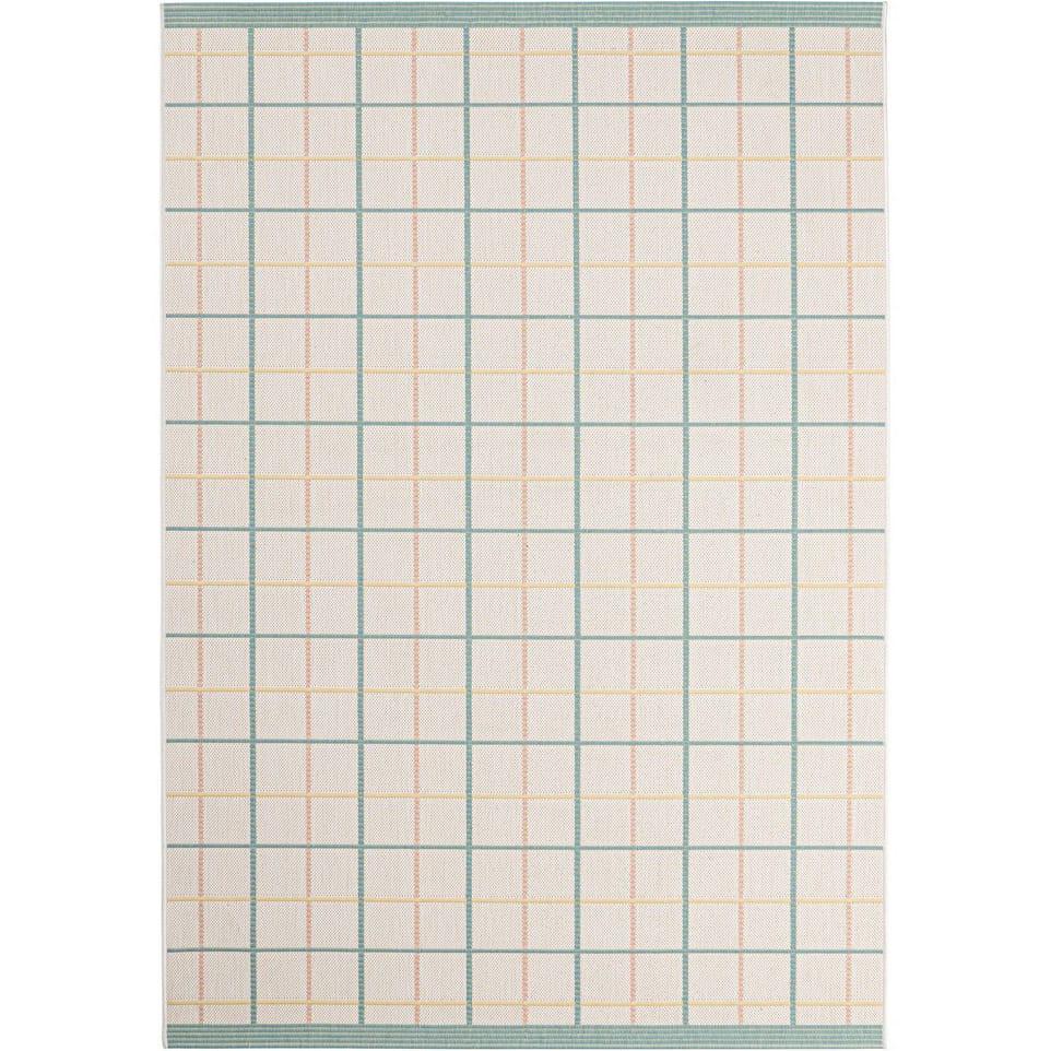 Date vita alla vostra stanza con il tappeto tappeto Nour nei colori verde, blu e giallo. Questo tappeto robusto e versatile misura 200x290 cm ed è realizzato in polipropilene al 100%. Ideale per interni ed esterni, dona colore e stile a qualsiasi ambiente.