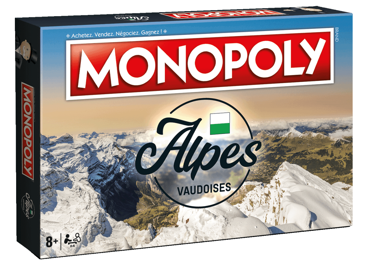 Entre vignes, lacs et montagnes, partez � la conqu�te des Alpes vaudoises au MONOPOLY. � travers ce plateau de jeu, d�couvrez des activit�s funs et insolites, tels que rafting, snowpark, parc aventure, sommets, toboggans de neige, lacs ... les cases vous donneront l�eau � la bouche et pleins d�id�es pour vos loisirs dans la r�gion. Qui acquerra le restaurant tournant le Kuklos, le charmant refuge de Solalex ou Le Grand Chalet � Rossini�re ? � qui appartiendra l�agence immobili�re LPM ou l�assurance AXA ? Et qui seront les heureux propri�taires de Villars Ski School, de la maison du sport vaudois et du Coll�ge Alpin Beau Soleil ? Le MONOPOLY des Alpes Vaudoises est la version id�ale pour les familles qui souhaitent d�couvrir la r�gion � travers le jeu.