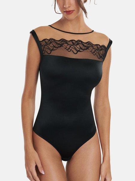 Il body Dione è un capo bello ed elegante che può essere indossato anche come capo esterno. Il top è decorato con pizzo e tulle color carne, mentre la scollatura e le maniche ultra corte sono rifinite in micro-mesh. Un lussuoso, decorativo e seducente dettaglio di chiusura è presente sul retro con lacci incrociati e un fiocco. Questo body è senza ferretto e non preformato, con un taglio a perizoma nella zona dei glutei e una chiusura regolabile al cavallo.