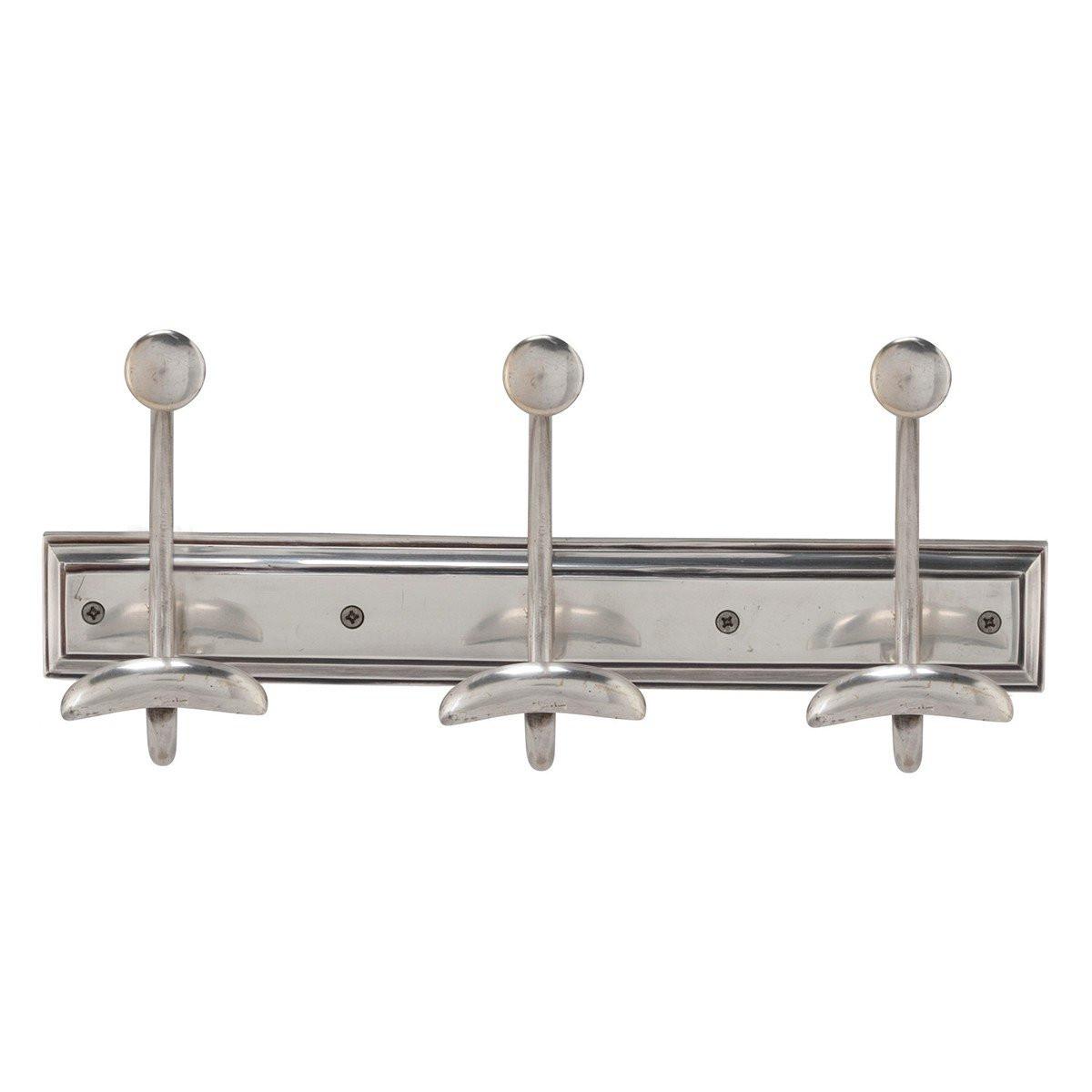 Portaoggetti a parete con 3 appendiabiti in ottone. 4 supporti murali inclusi. Dimensioni: Lunghezza 38 cm x Profondità 15 cm x Altezza 17 cm. Caratteristiche: 3 appendiabiti - doppio gancio. Struttura in ottone con finitura argento invecchiato. Finitura argentata invecchiata/verniciata. Supporti murali inclusi. Firma, installato nelle vicinanze di Lille in Francia, crea e riproduce mobili da oltre 20 anni. La sua collezione offre una vasta scelta di mobili e articoli per la decorazione. Il gusto del vero mobile concepito secondo le regole dell'arte, e uno sguardo eclettico offre un mix di originalità e autenticità. Scopri una selezione di mobili realizzati con materiali nobili e di qualità.