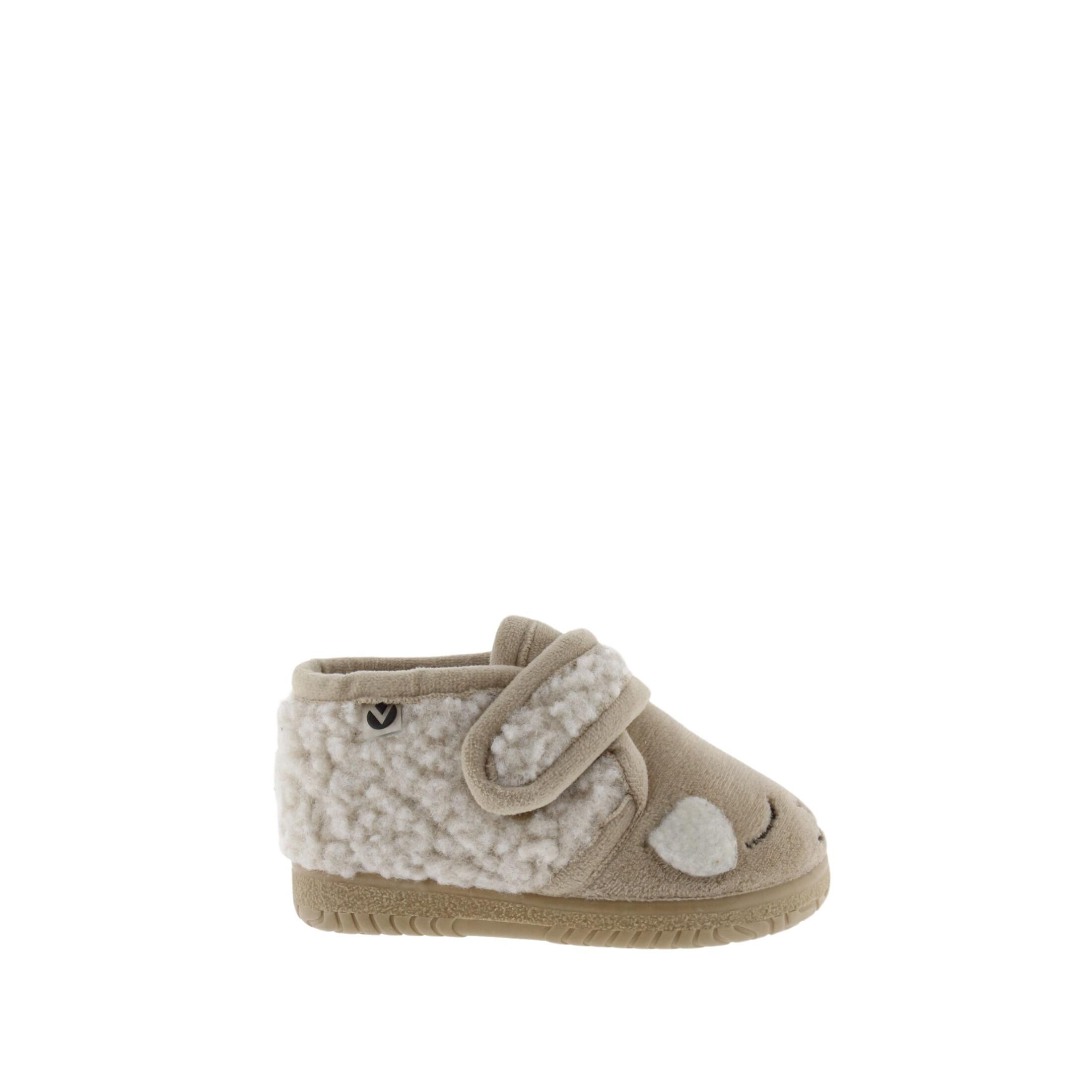 Victoria stivale per bambini per la casa con motivi di animali in materiale morbido e caldo. Chiusure in velcro per una facile regolazione e autonomia. La sua suola in gomma naturale è fatta con il 20% di materiale riciclato.