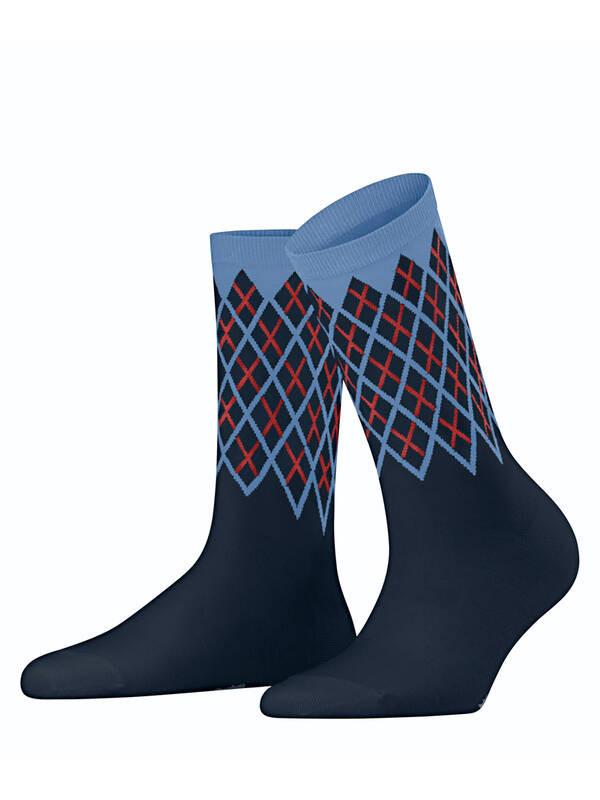 Le calze Mayfair offrono un'interpretazione alla moda del classico motivo argyle. Presentano un design femminile, una delicata miscela di cotone e una sensazione di comfort inconfondibile. La combinazione di colori armoniosa le rende facili da abbinare a vari outfit.