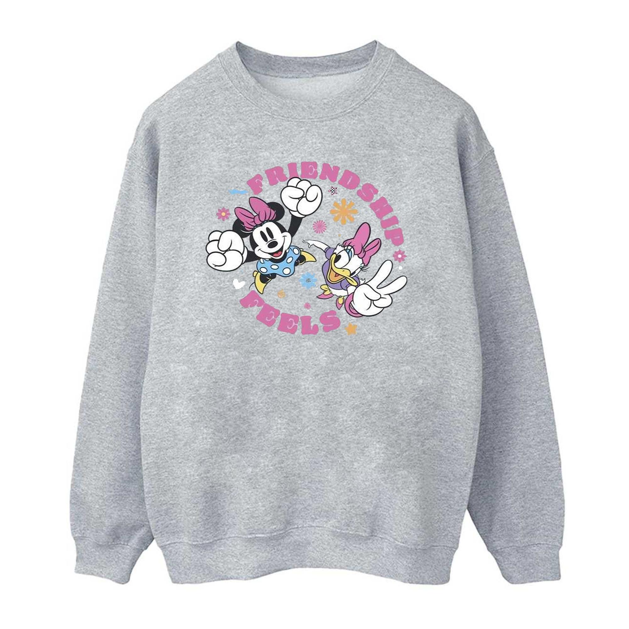 Questa felpa presenta una grafica giocosa di Minnie Mouse e Paperina, che celebra l'amicizia. Il design è centrato sul davanti, rendendola un'aggiunta affascinante a qualsiasi guardaroba casual.
