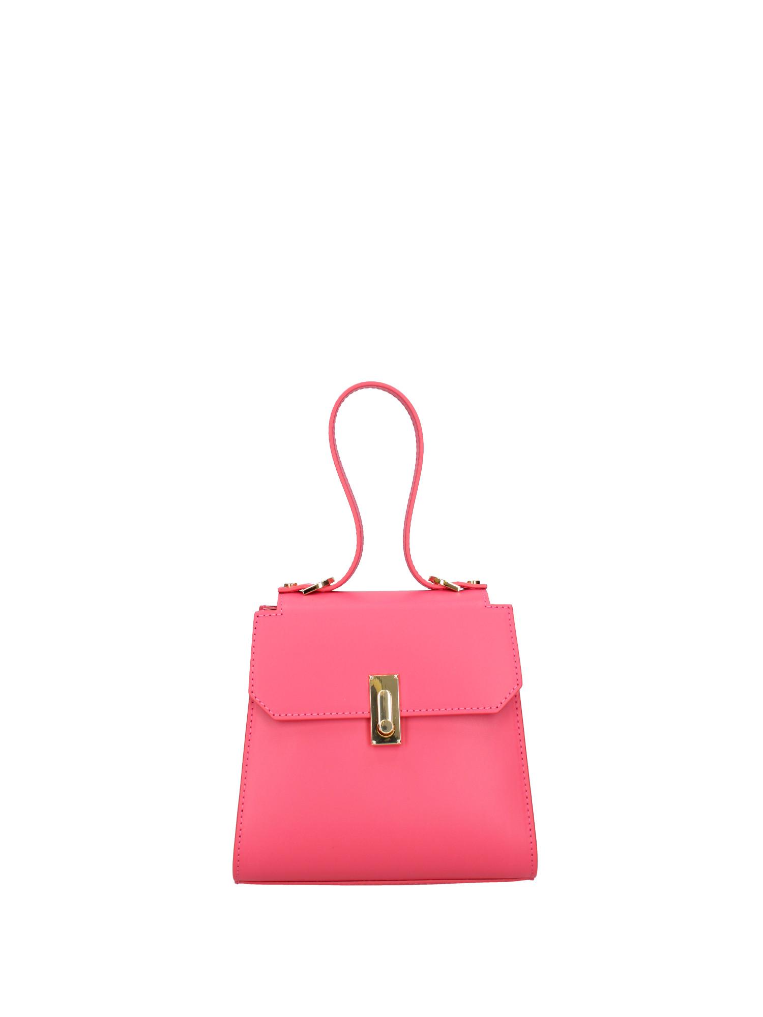 Questa elegante borsa a mano presenta un design strutturato con un manico superiore e una tracolla staccabile, offrendo opzioni di trasporto versatili. La chiusura a patta frontale è assicurata da un'elegante chiusura a girello, aggiungendo un tocco di sofisticazione all'estetica generale. Le sue dimensioni compatte la rendono ideale per trasportare gli essenziali quotidiani mantenendo un look raffinato.