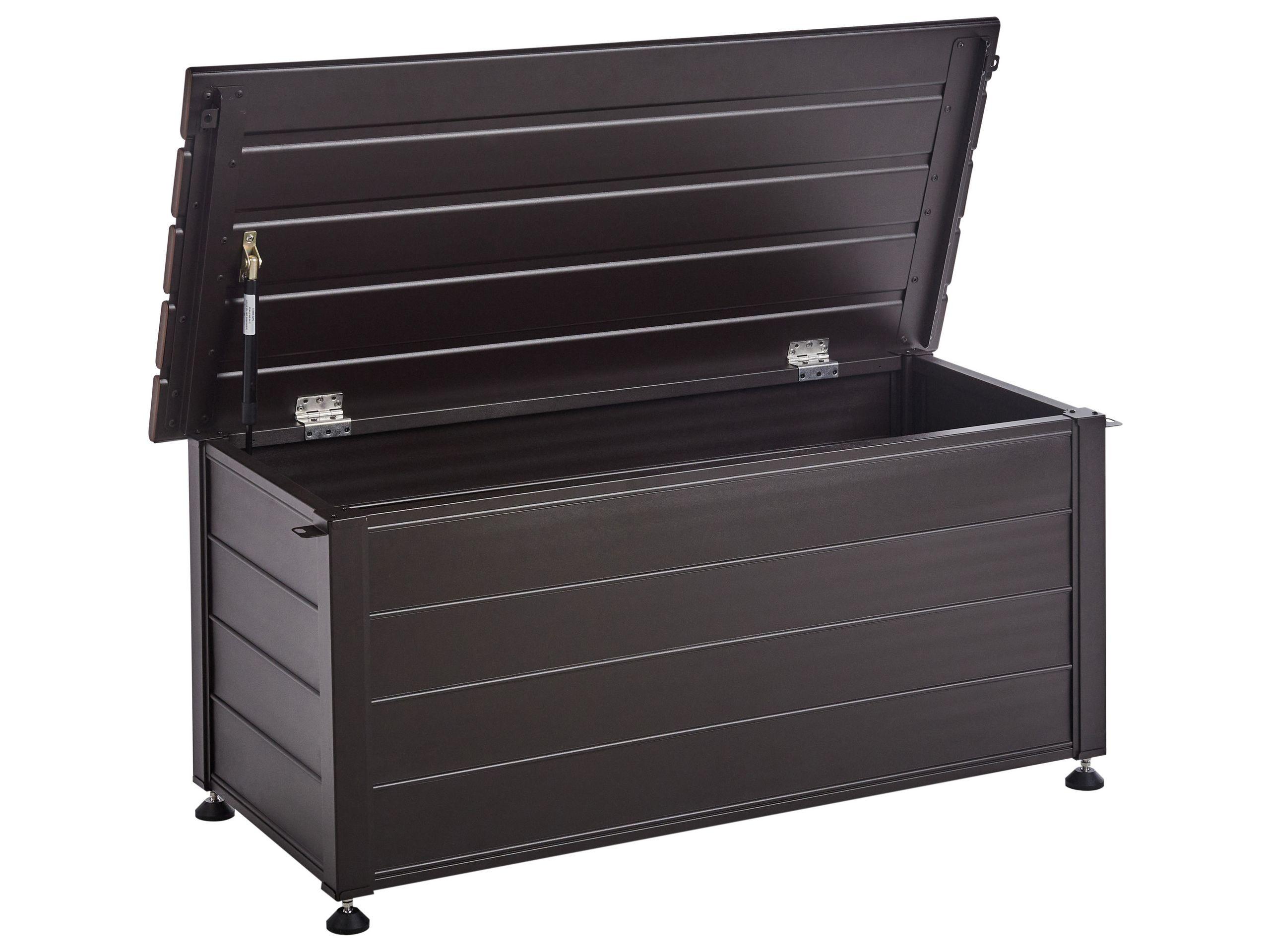 Mobile contenitore da esterno. Questo contenitore per esterni è perfetto per il giardino o il patio. Realizzato in robusto alluminio, è progettato per resistere all'acqua e al vento. Spaziosa e rifinita in un classico colore marrone scuro, questa cassetta può contenere una varietà di attrezzature, utensili e accessori e si adatta a molti ambienti esterni.