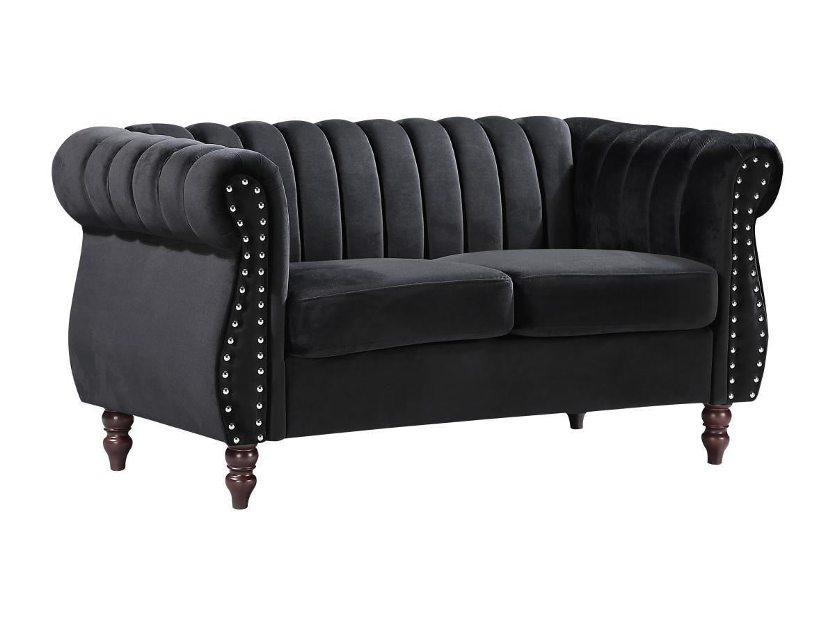 Vente-unique, Divano Chesterfield 2 posti in Velluto Nero - TRUMBO