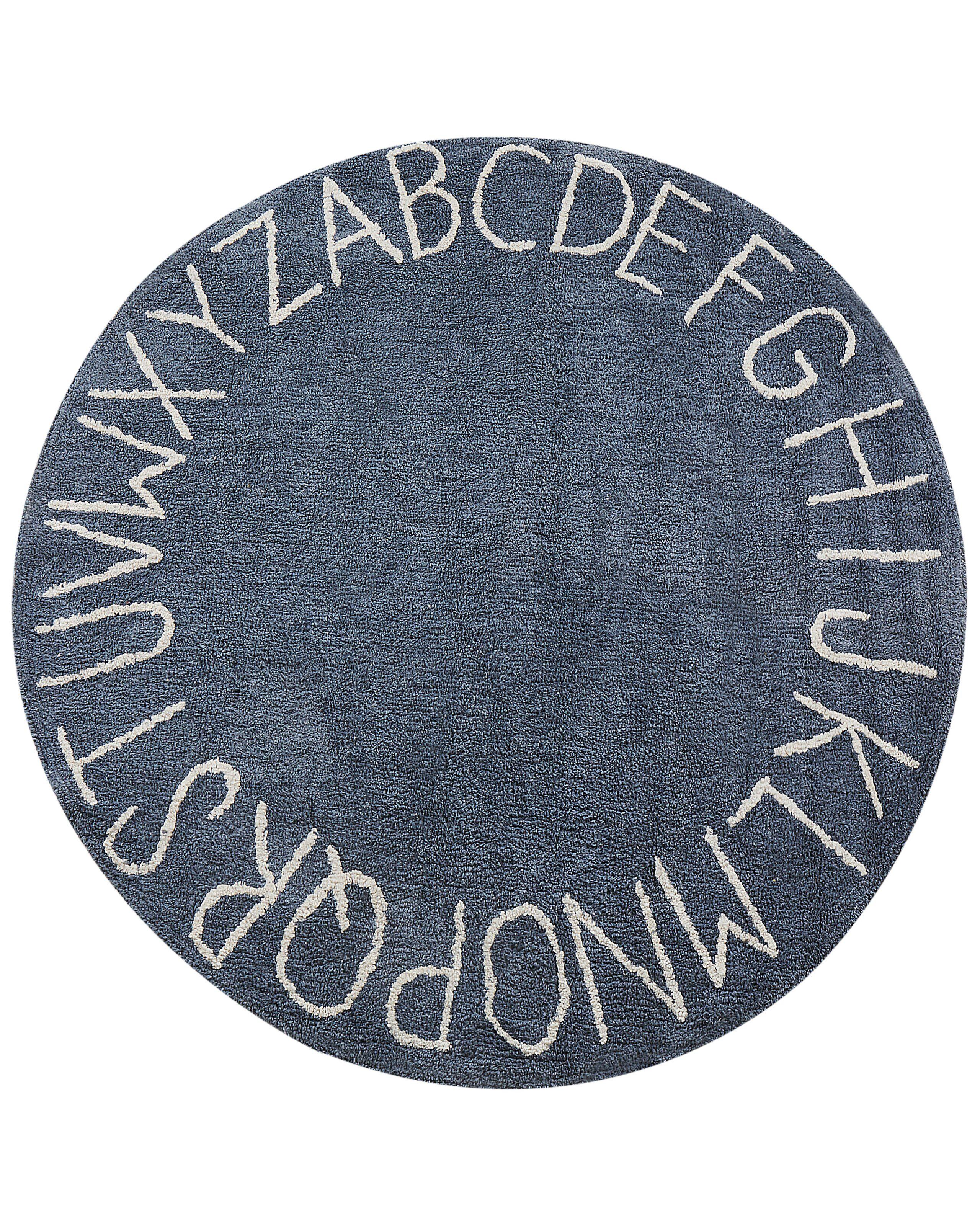Tappeto per bambini in cotone fatto a mano. Migliora lo spazio di apprendimento di tuo figlio con questo vivace tappeto rotondo in cotone fatto a mano con un alfabeto ricamato. Perfetto per le stanze dei bambini, aggiunge un tocco giocoso e incoraggia le prime abilità di comprensione. Realizzato con cura e sicuro per il riscaldamento a pavimento, offre stile e comfort per infinite avventure educative.