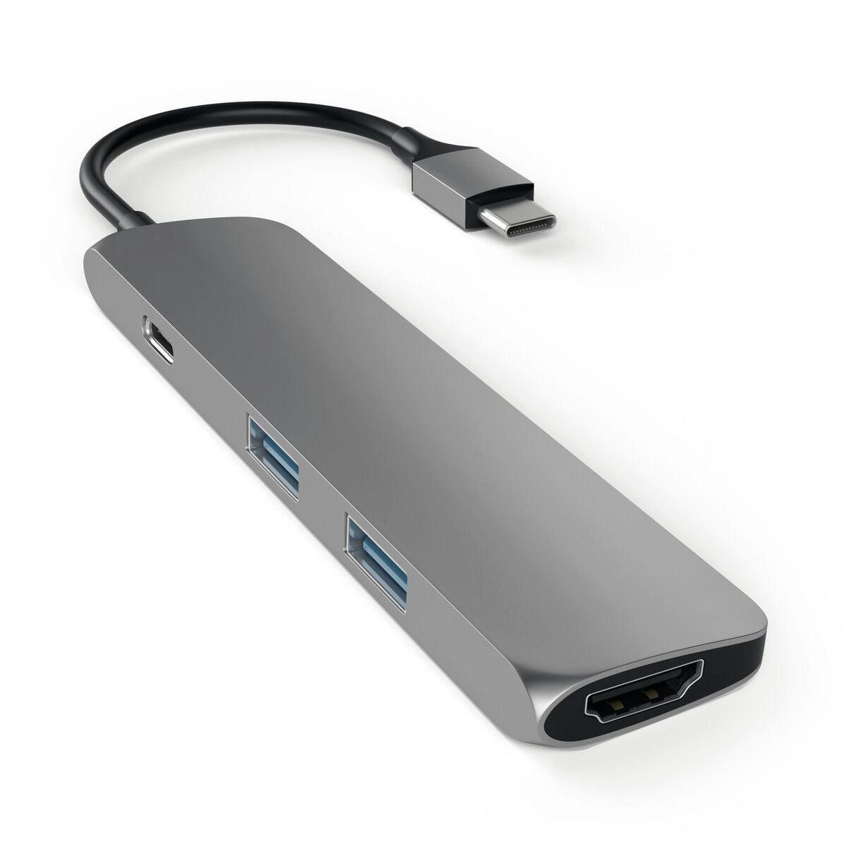 SATECHI, adattatore multiporta USB-C in allumino con porta di ricarica di tipo C, uscita video HDMI 4K, 2 porte USB 3.0